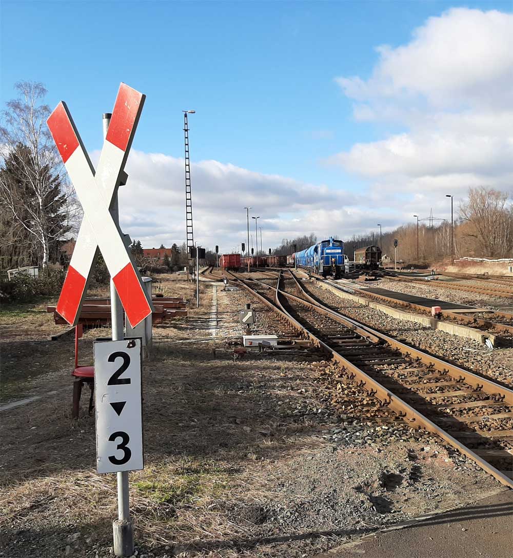 km 2,3 in Espenhain Werkbahnhof - Blick Richtung Streckenende