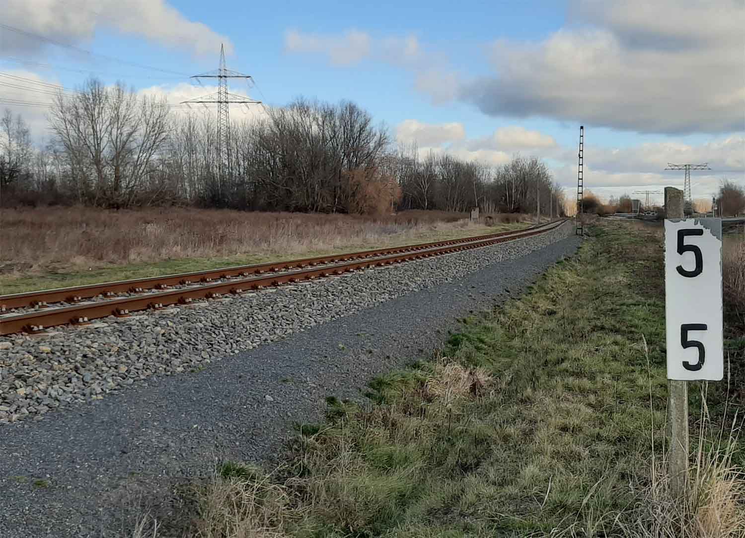 km 0,5 (Stein und Tafel) zwischen Böhlen (b Leipzig) und Rötha - Blick Richtung