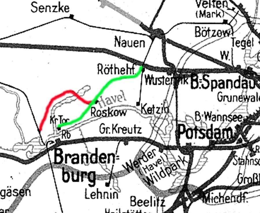 Röthehof 26,40 km 7,20 der Strecke Nauen Krbf 0,0 - Röthehof 7,20 - Ketzin 15,60 - Ketzin Hafen 16,43