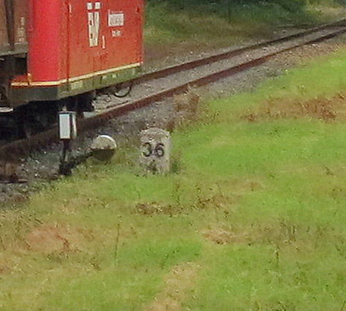 Beim genaueren Betrachten ist auch ein Kilometerstein zu erkennen.