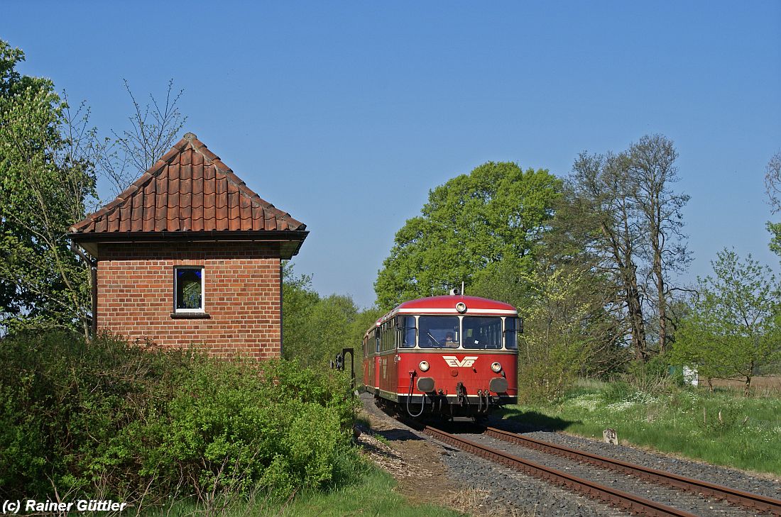 T 164 (links im Lade- und Ausweichgleis) und T 170 (rechts auf dem Streckengleis), Blick Richtung Bremervörde
