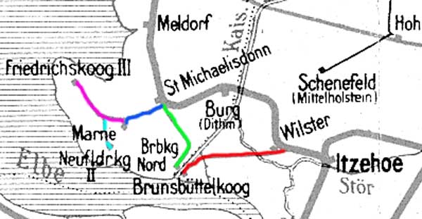 St Michaelisdonn 0,0 - Brunsbüttelkoog Nord 12,06 bzw. St Michaelisdonn 0,0 - Brunsbüttel Nord 12,03