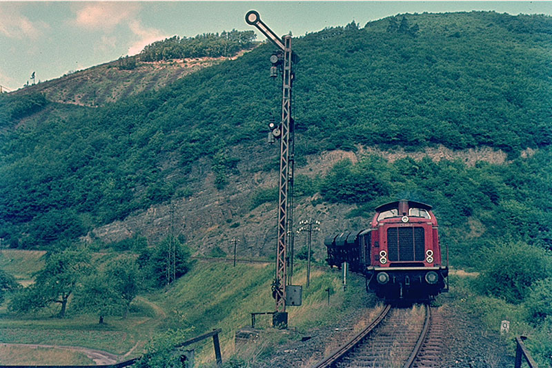 km 0,1 in Dümpelfeld - Blick Richtung Lissendorf 211 240 mit Ng8991 Foto: Michael Heinzel, 28.07.1970