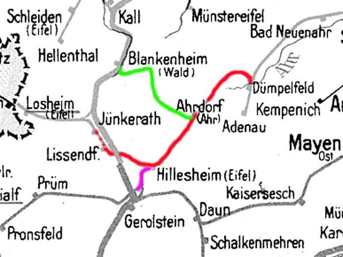 Dümpelfeld 0,0 - Ahrdorf (Ahr) 18,35 - Lissendorf 43,84 - (Jünkerath 47,73)