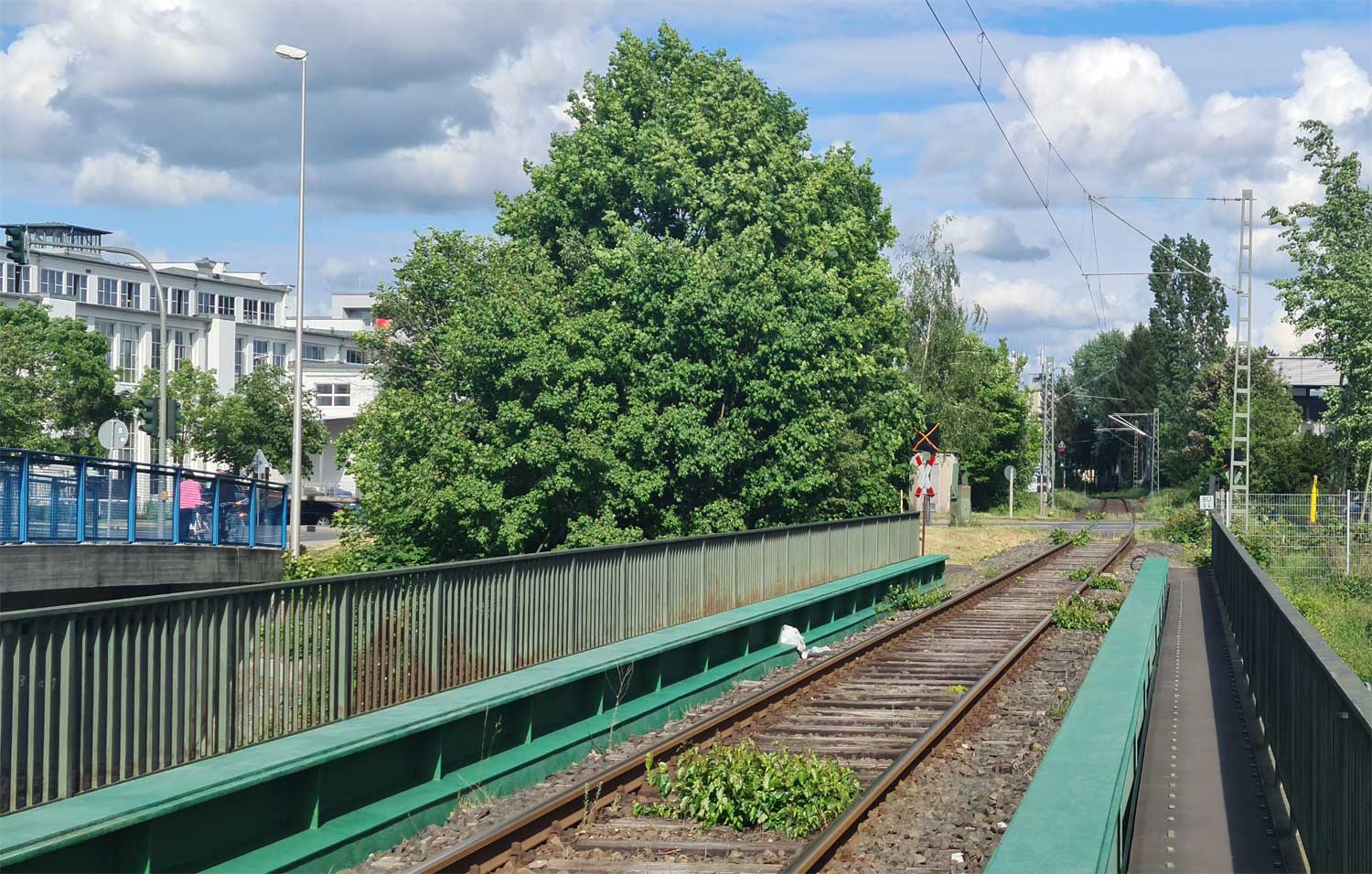 BÜ km 0,5 zwischen Erlangen-Bruck und Frauenaurach - Blick Richtung Erlangen-Bruck