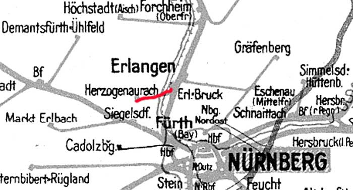 Erlangen-Bruck 0,0 - Frauenaurach 2,461 - km 3,6 - Streckenunterbrechung - Herzogenaurach 8,84 (5916)
