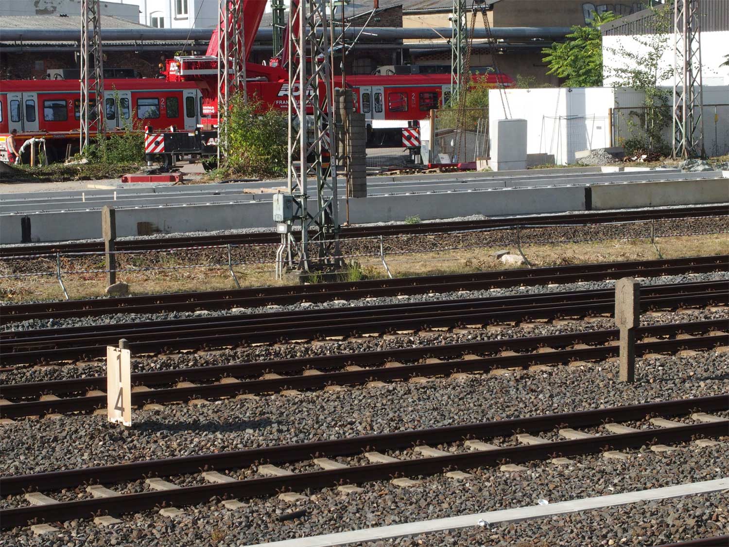 km 1,6 (Tafel und Stein rechts) in Frankfurt (Main) Hbf - Blick Richtung Abzw Rödelheim