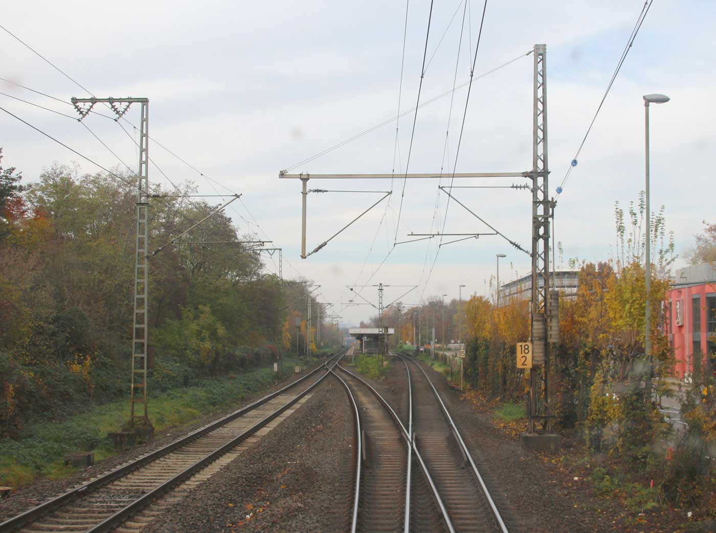 km 77,718 der Strecke Mainz Hbf 0,0 - Darmstadt Hbf 33,38 (kommend von Mainz Hbf)/34,54 (kommend von Mainz Hbf Gegengleis)/33,96 (gehend nach Aschaffenburg) - Aschaffenburg Hbf 77,718 mit Zweigstrecke