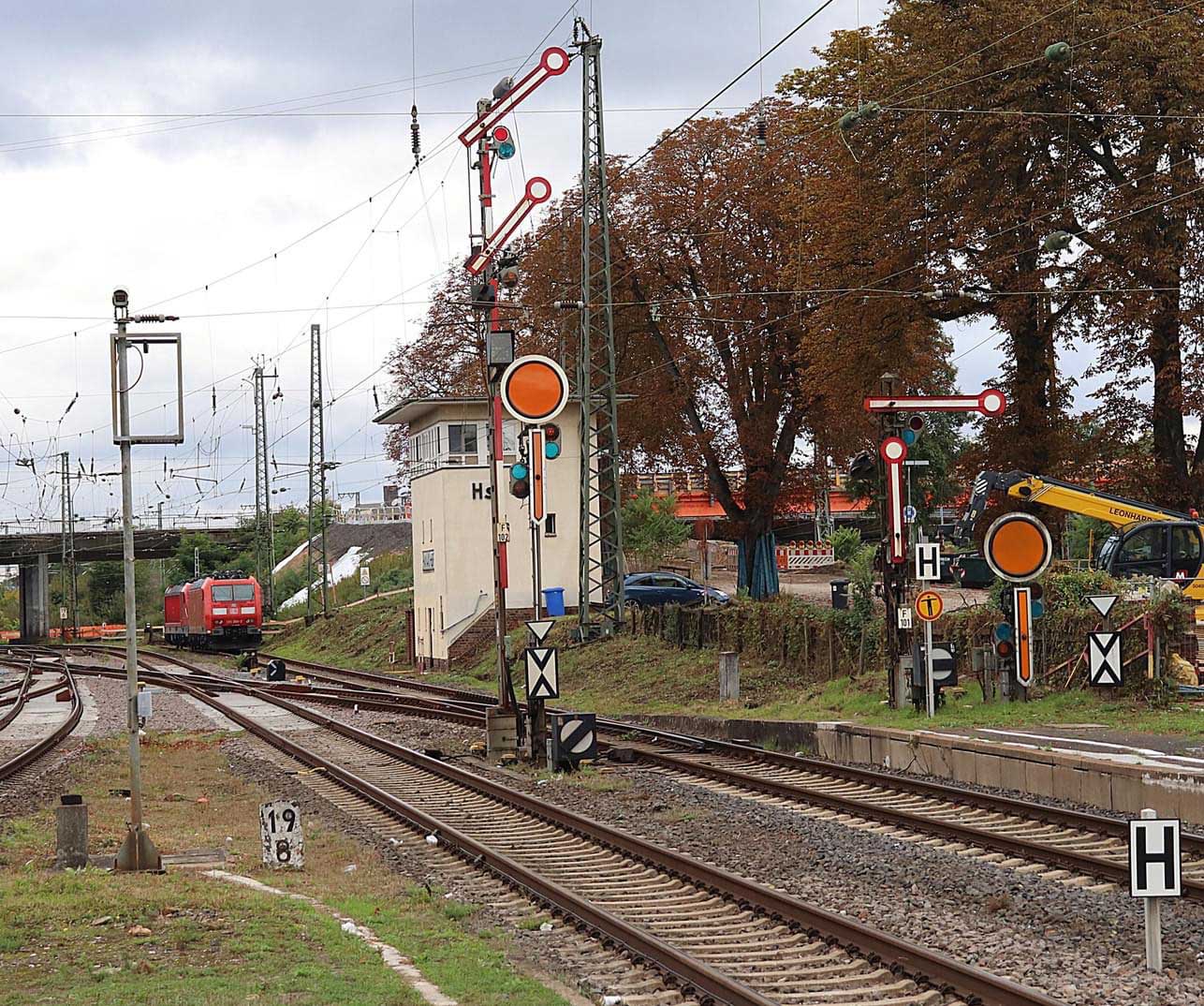 km 77,72 der Strecke Mainz Hbf 0,0 - Darmstadt Hbf 33,38 (kommend von Mainz Hbf)/34,54 (kommend von Mainz Hbf Gegengleis)/33,96 (gehend nach Aschaffenburg) - Aschaffenburg Hbf 77,72 mit Zweigstrecke