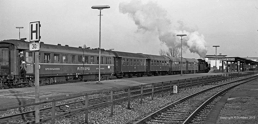 Der Leerzug wird aus dem Kopfbf zurück nach Friedrichshafen Stadt gedrückt.