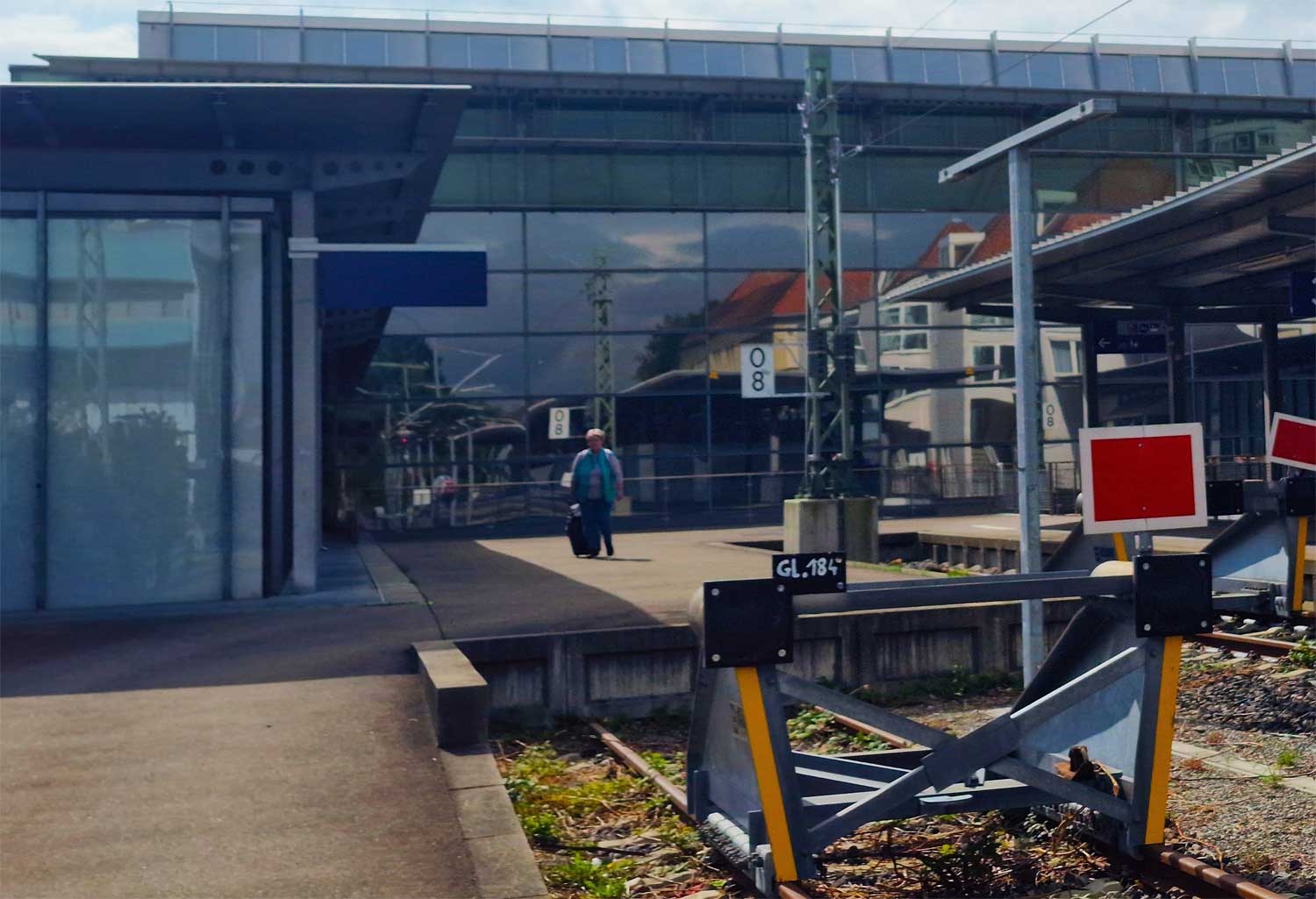km 0,0 der Strecke Friedrichshafen Stadt 0,0 - Abzw Lindau-Aeschach 22,55 | ||
