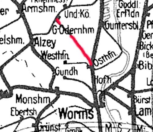 Pfalz/Hessen km 125,10 = km 0,0 - Worms 3,21 -