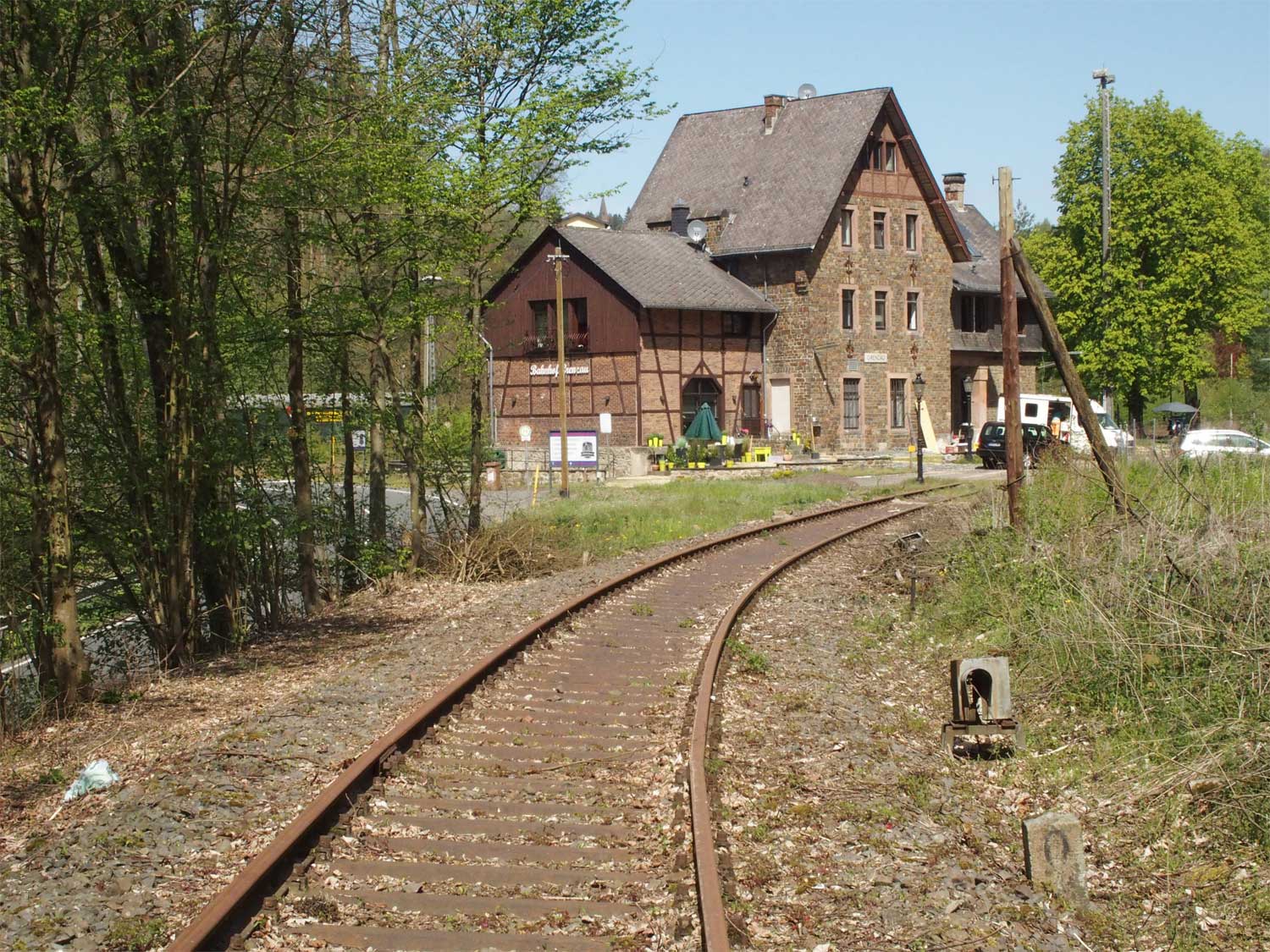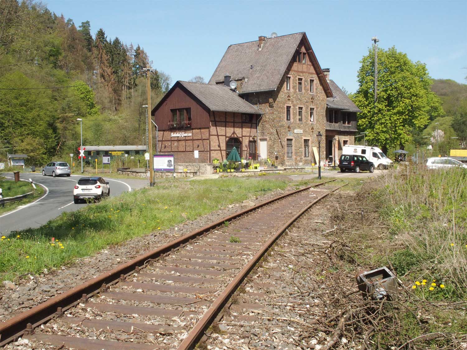Hillscheid - Empfangsgebäude (gelb) - Gleisseite Foto: