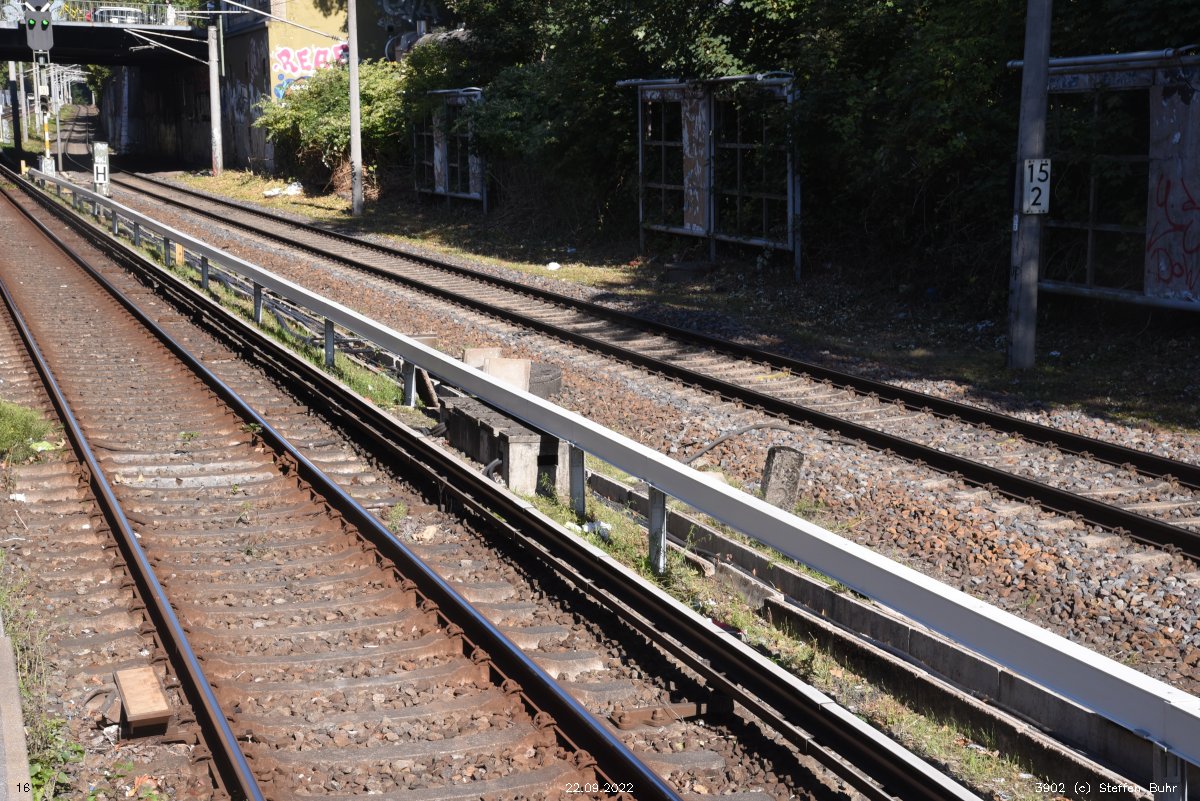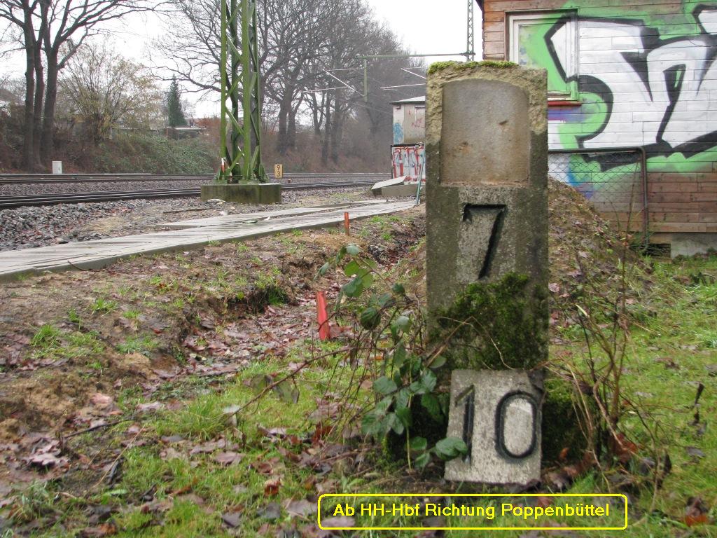 km 15,8 (Tafel); km 15,9 (Stein) und km 16,0 (Stein) am Abzw Hamburg-Horn