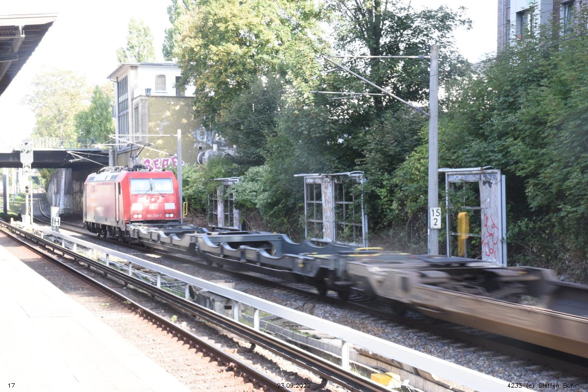 Rechts der S-Bahn-Bahnhof Hamburg Elbgaustraße