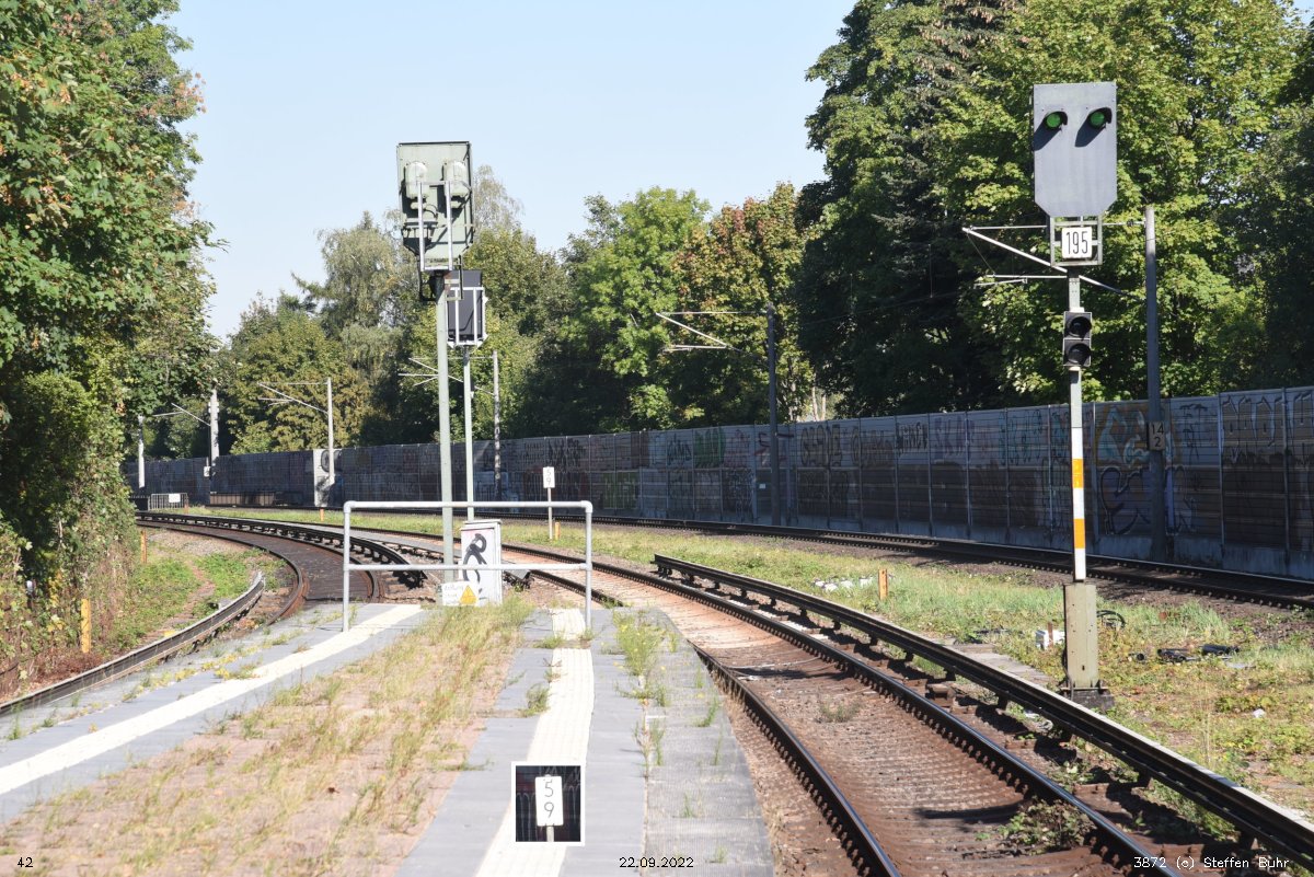Rechts die S-Bahnstrecke Hamburg Hbf (S-Bahn) 0,11 - Hamburg-Ohlsdorf 11,28 - Hamburg-Poppenbüttel 17,02