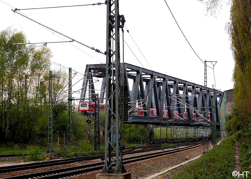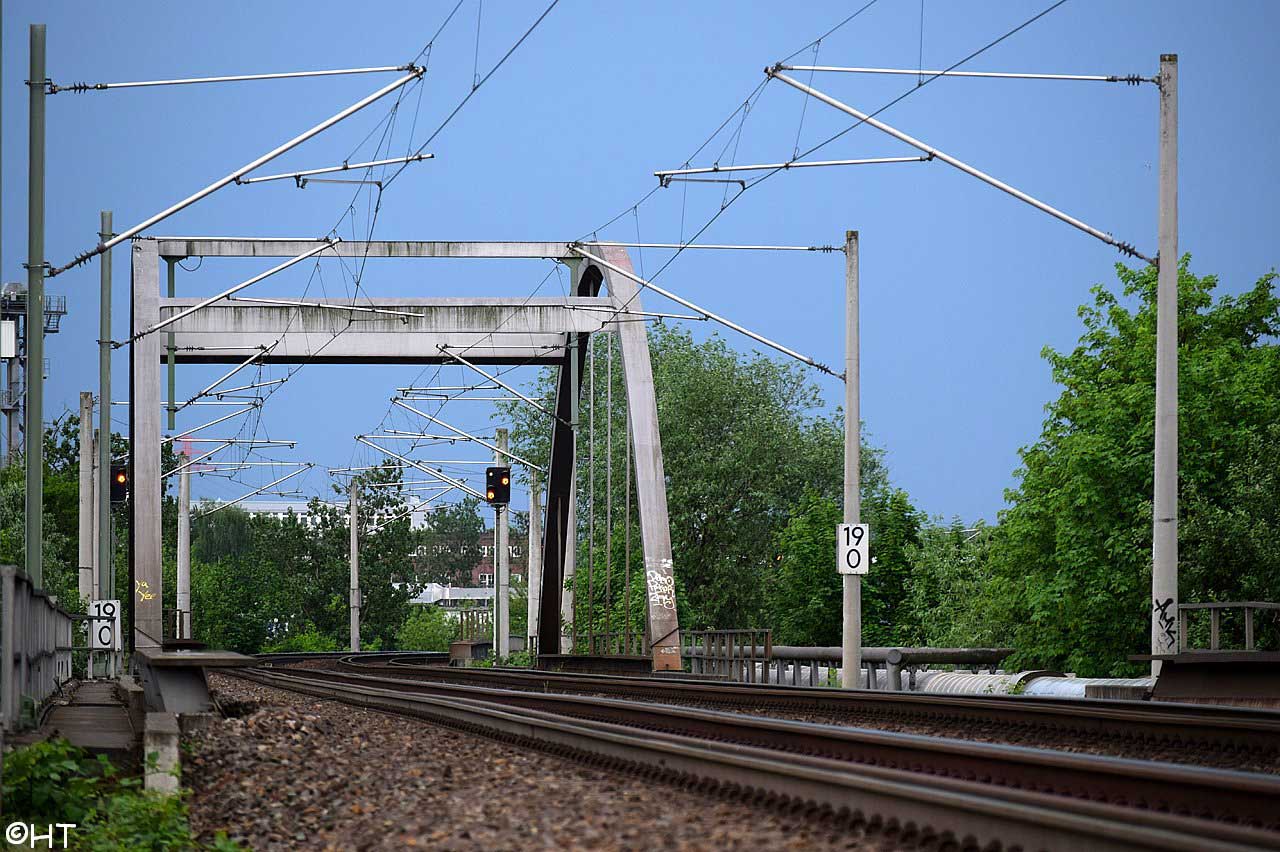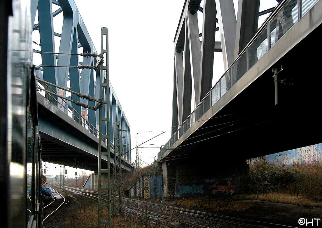 Vorn die S-Bahn-Brücke, dahinter die eingleisige Brücke der Strecke Berlin-Altona.
