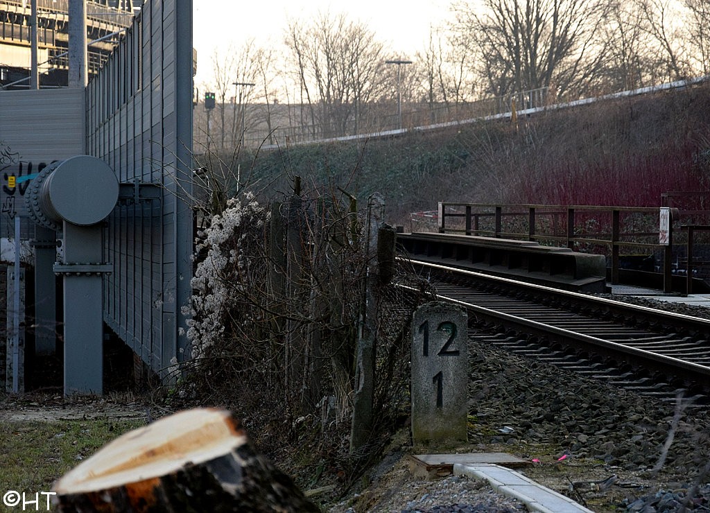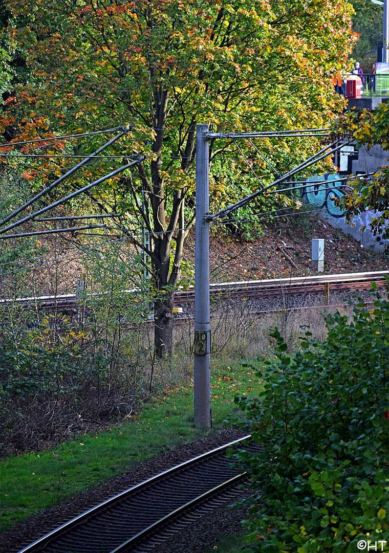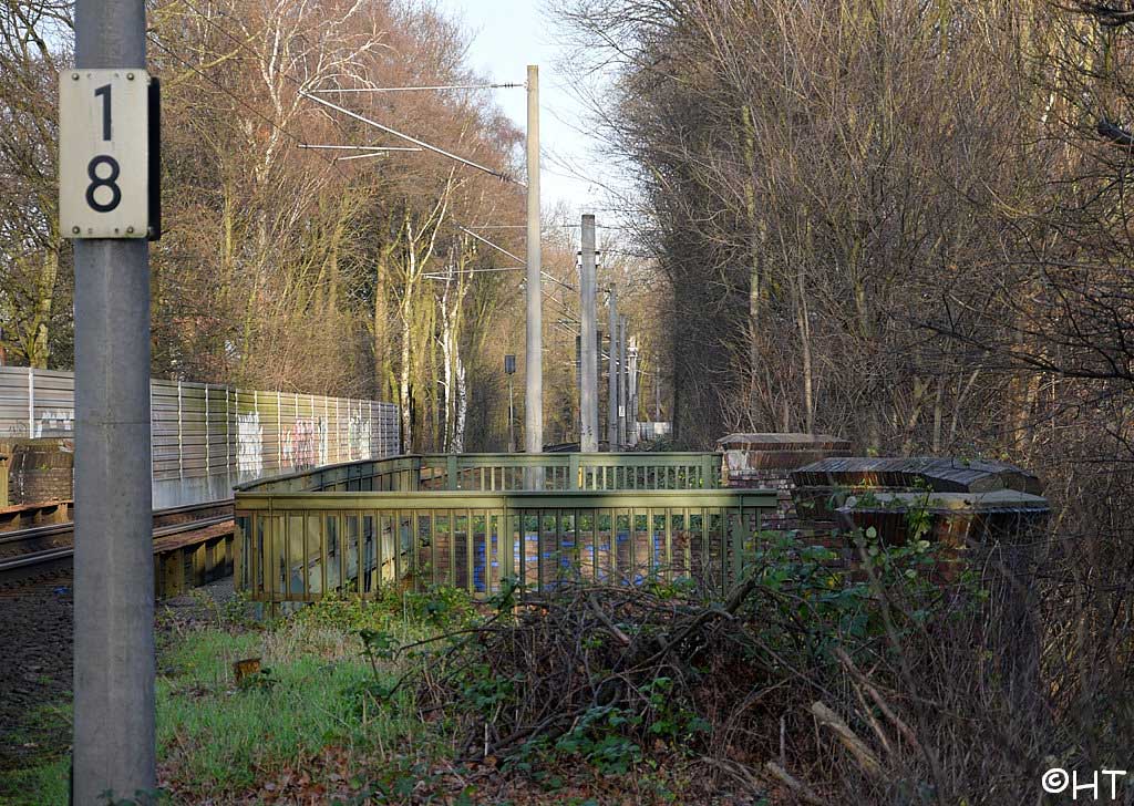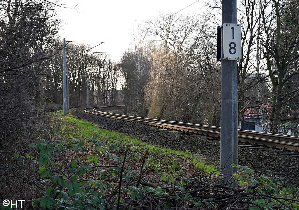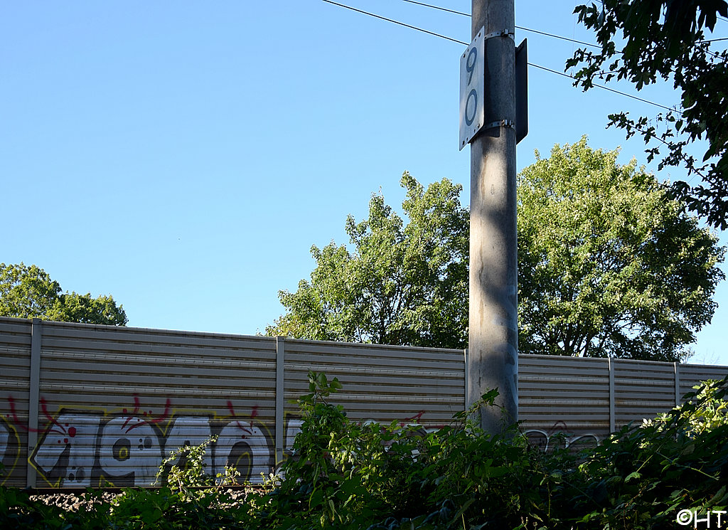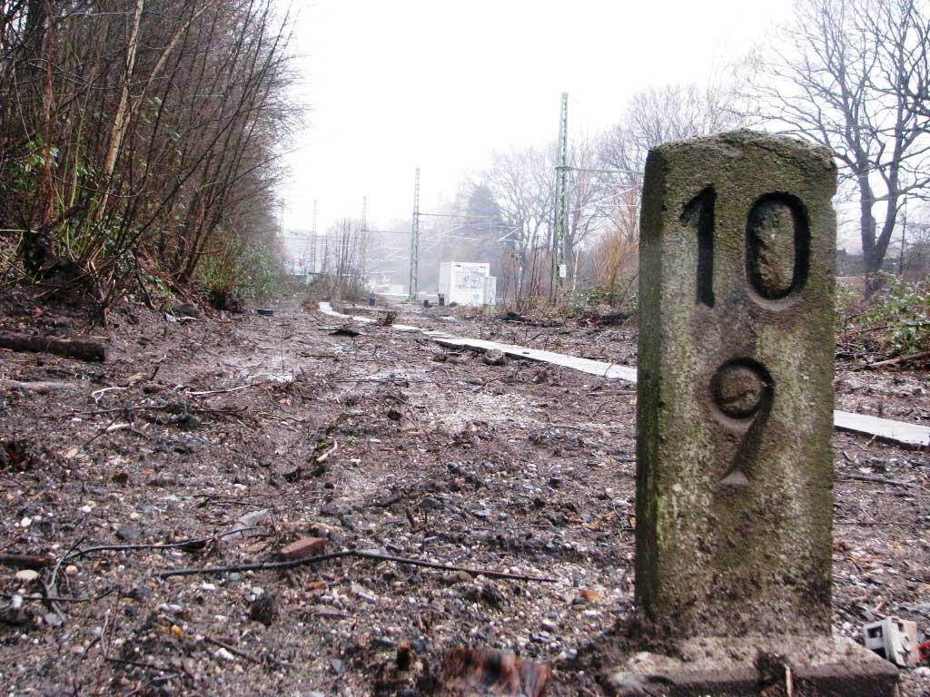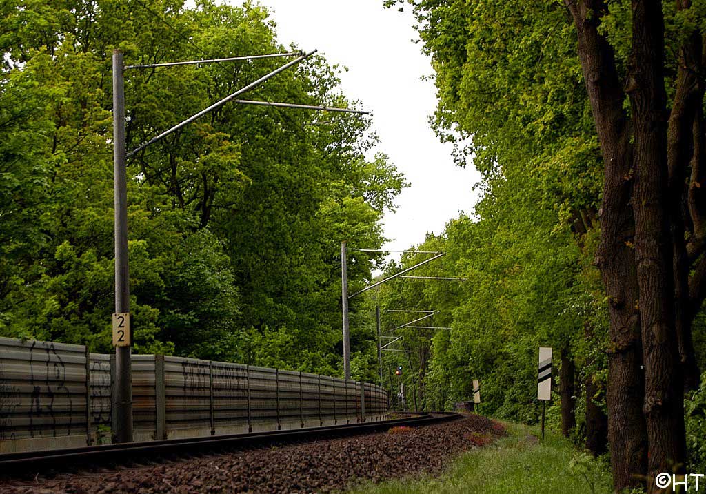Im Hintergrund km 9,8 der S-Bahnstrecke