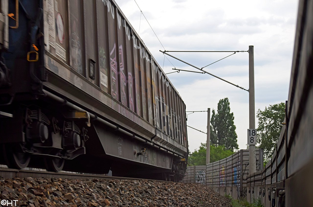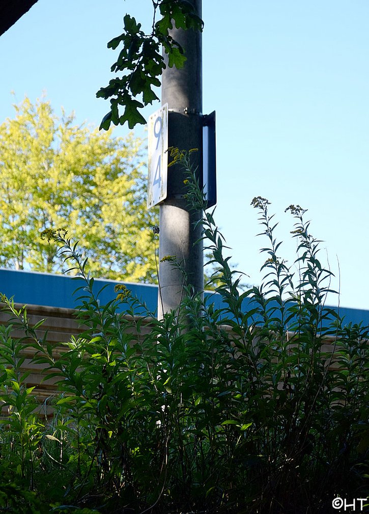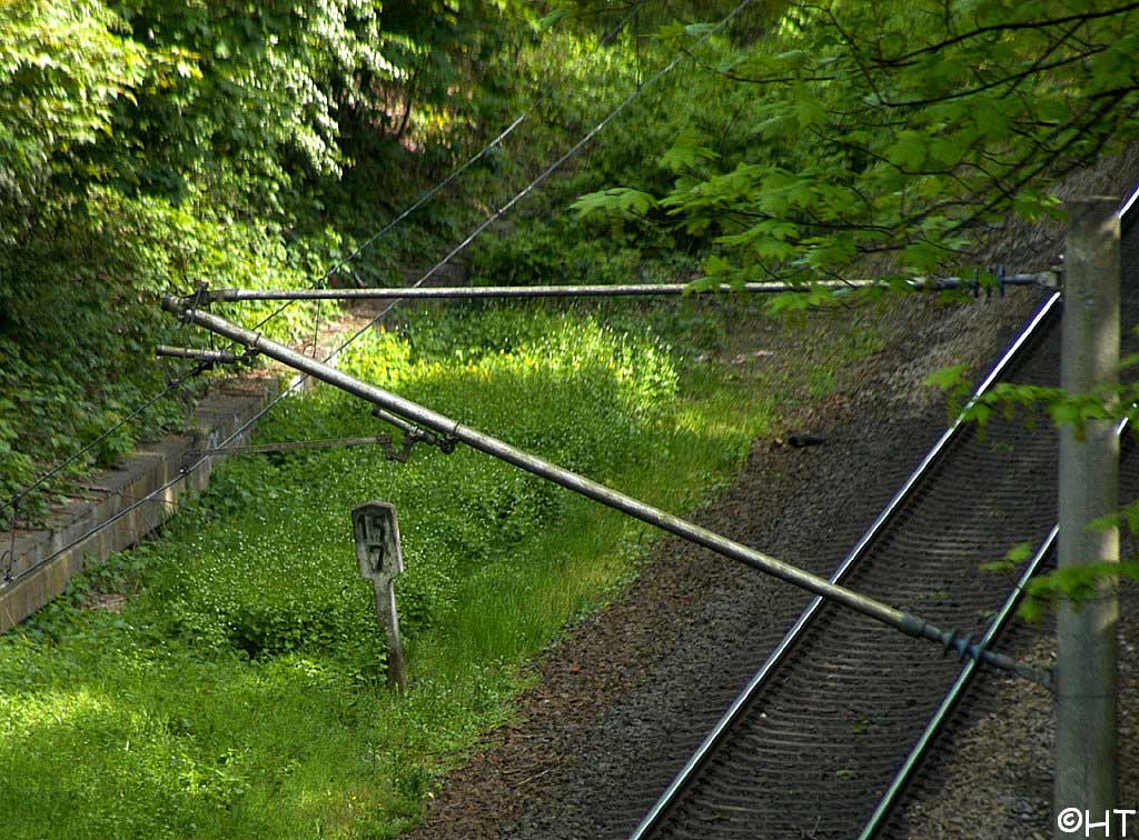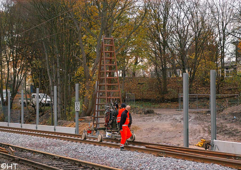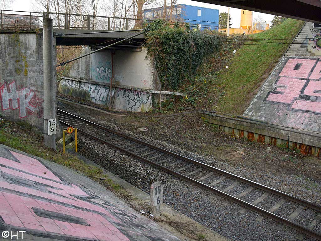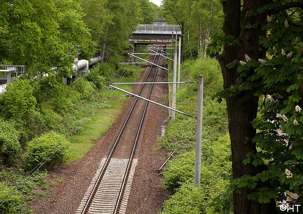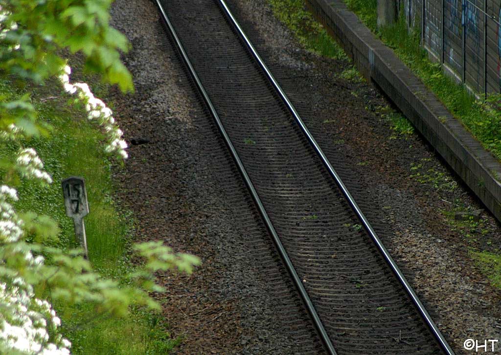 Im Hintergrund km 9,8 der S-Bahnstrecke