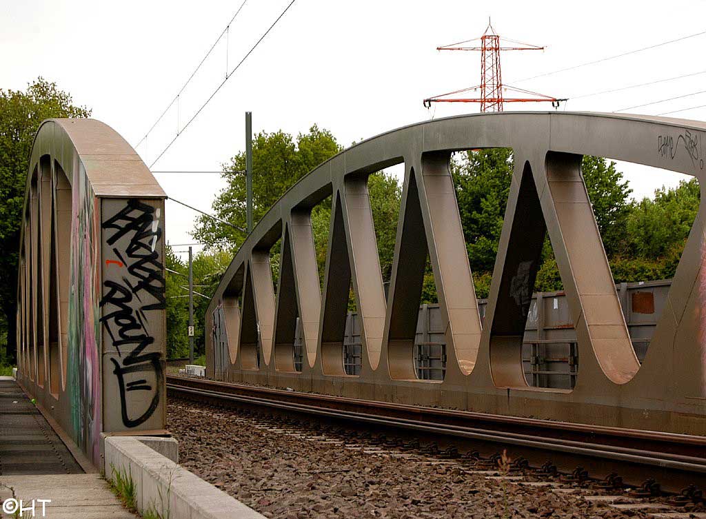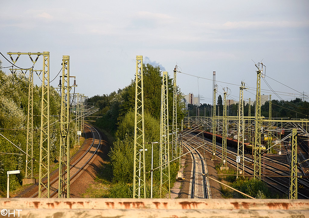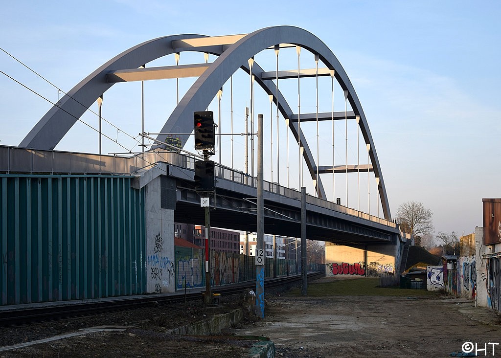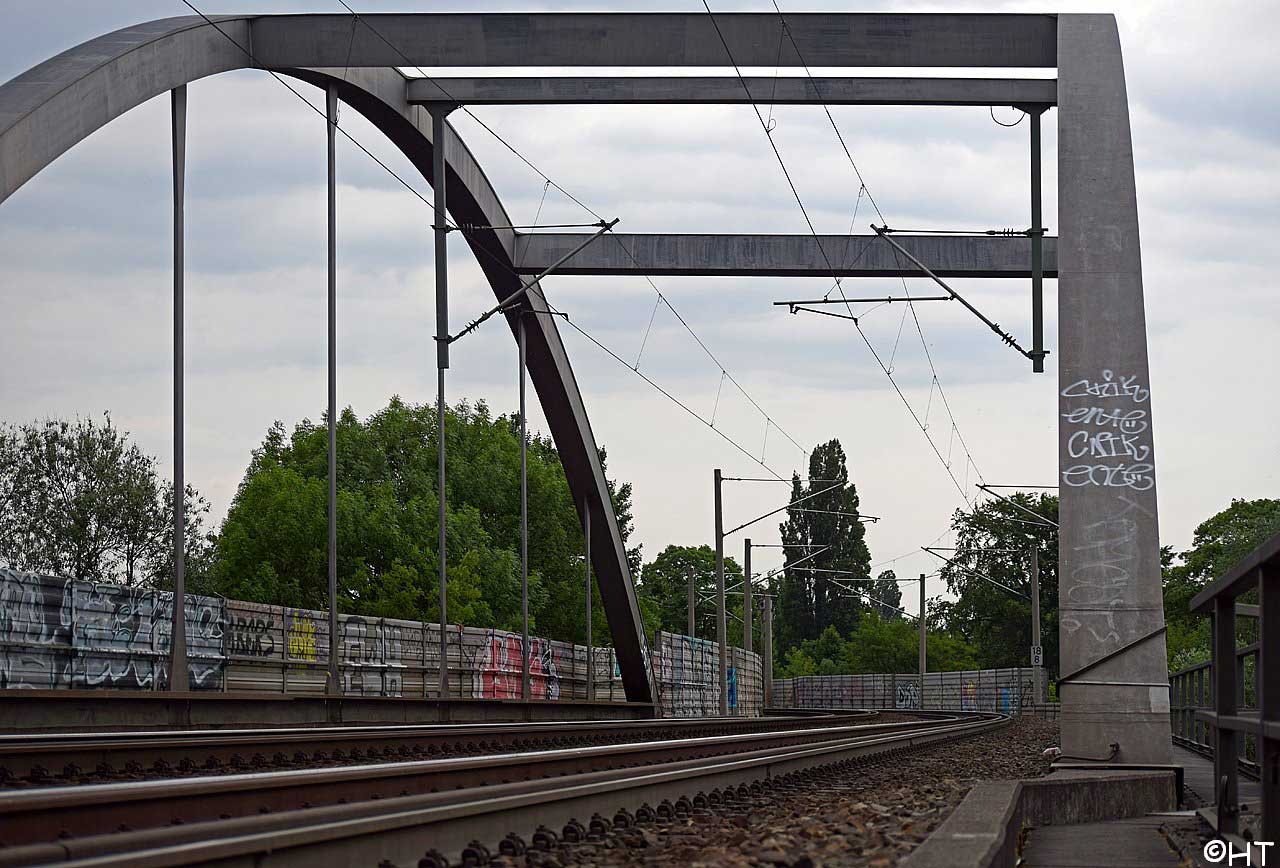 Im Hintergrund U-Bahn Hochbrücke, rechts S-Bahn-Damm