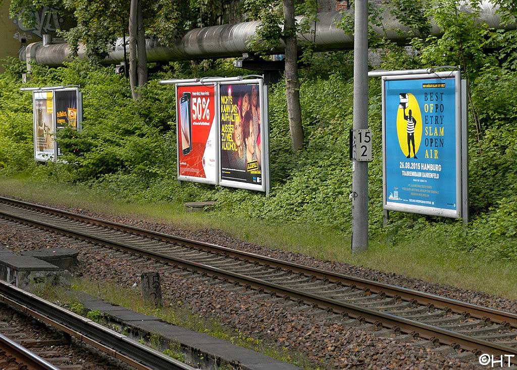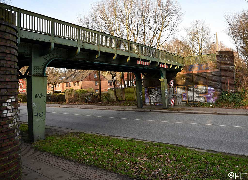 km 15,2 (Stein und Tafel) zwischen Hamburg-Barmbek und Abzw Horn in Höhe des S-Bahnhofes Hamburg Wandsbeker Chaussee