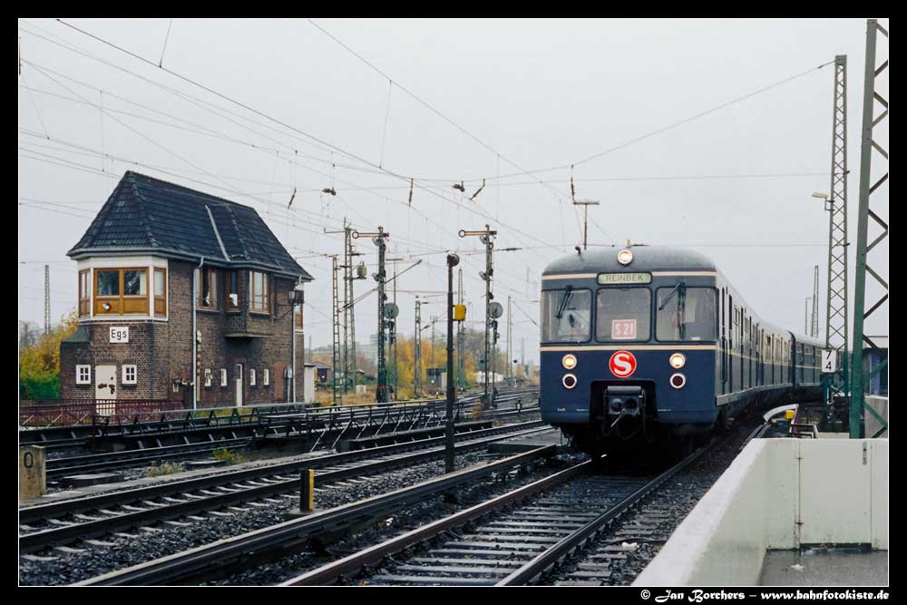 Als mit den Zügen 106 und 126 noch genau zwei in den originalen Hamburger Gleichstromfarben lackierte Züge im Einsatz standen, organisierte der Verein Historische S-Bahn Hamburg e.V. an einem Sonntagnachmittag nochmals einen gemeinsamen Einsatz beider Züge auf der S21. Leider spielte das Wetter überhaupt nicht mit, was allerdings im November sooo selten ja auch nicht ist. Hier setzt 470 426 aus dem Werk Elbgaustraße auf die S21 ein. Formsignale sind in Hamburg weitgehend Vergangenheit, lediglich auf der westlichen S1 rund um Blankenese und hier im Bereich Eidelstedt/Elbgaustraße haben sie sich bis heute halten können.