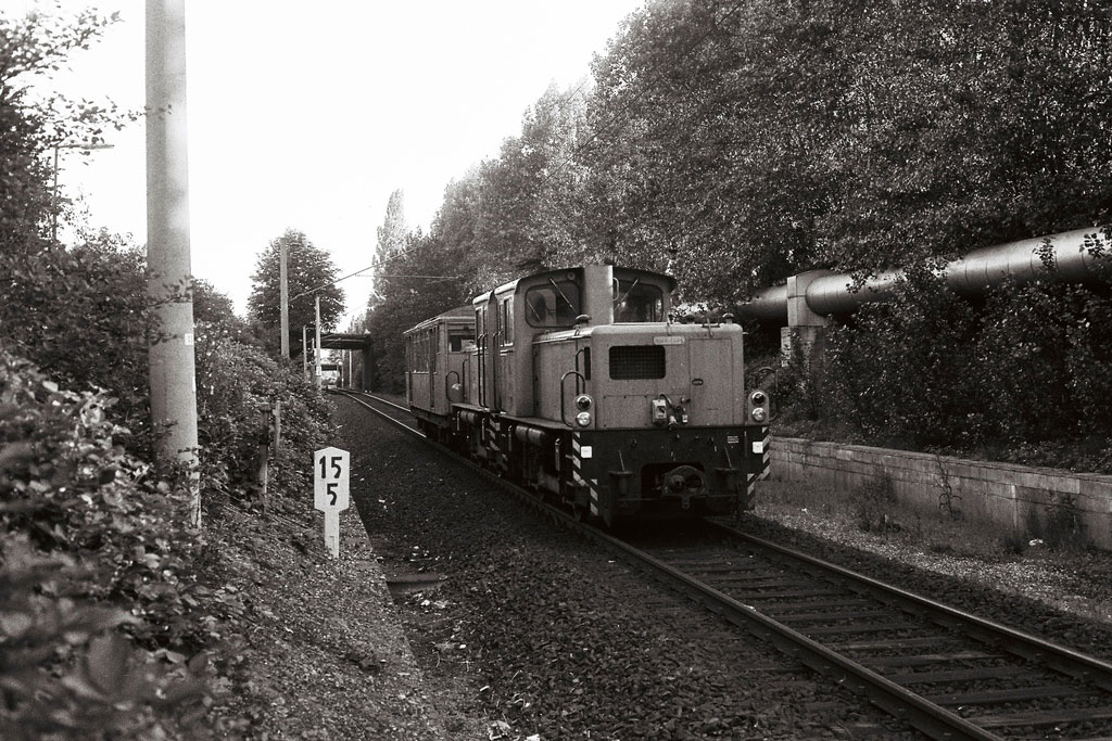 Die Dieselloks 8017 und 8018 der HHA (beide Gmeinder 1973) vom Typ DL2 kommen mit dem Atw 8040 im Schlepp.