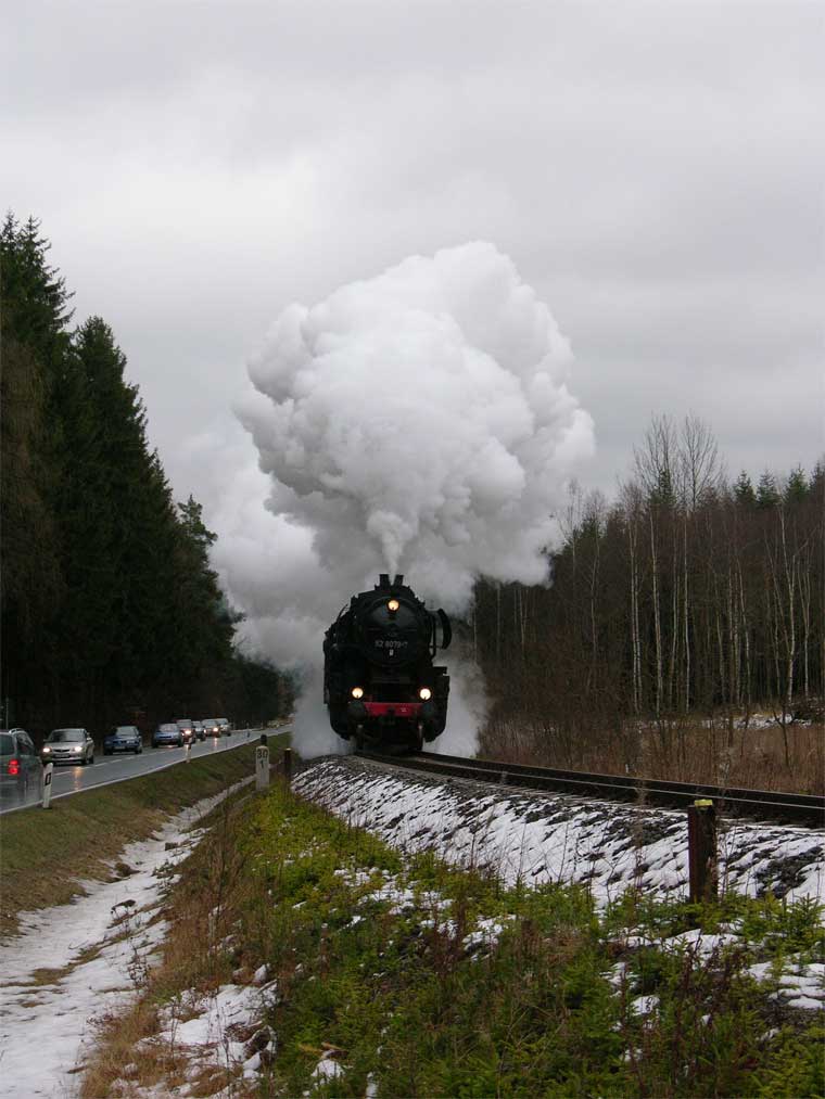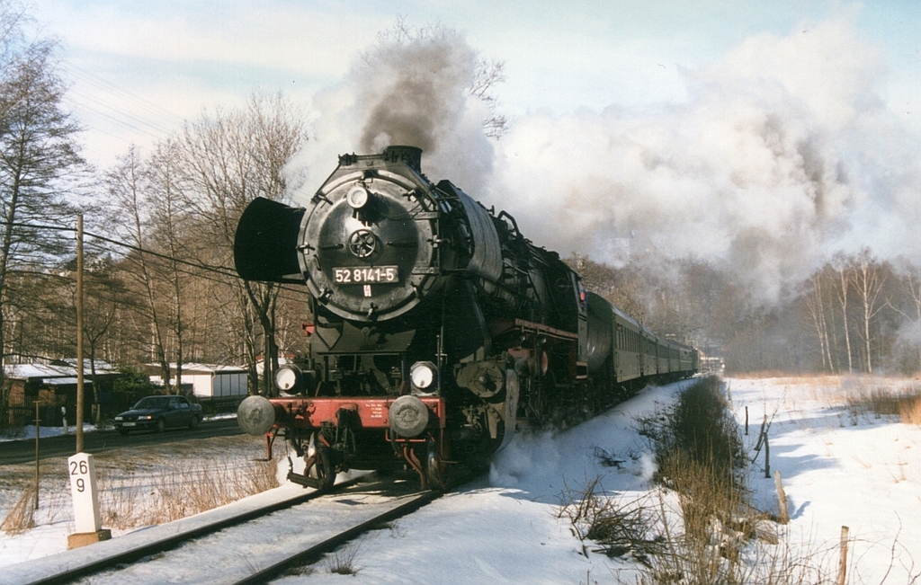 km 26,9 - Sonderzug Dresden - Altenberg (Erzgeb) mit 52 8141 am 07.02.1998