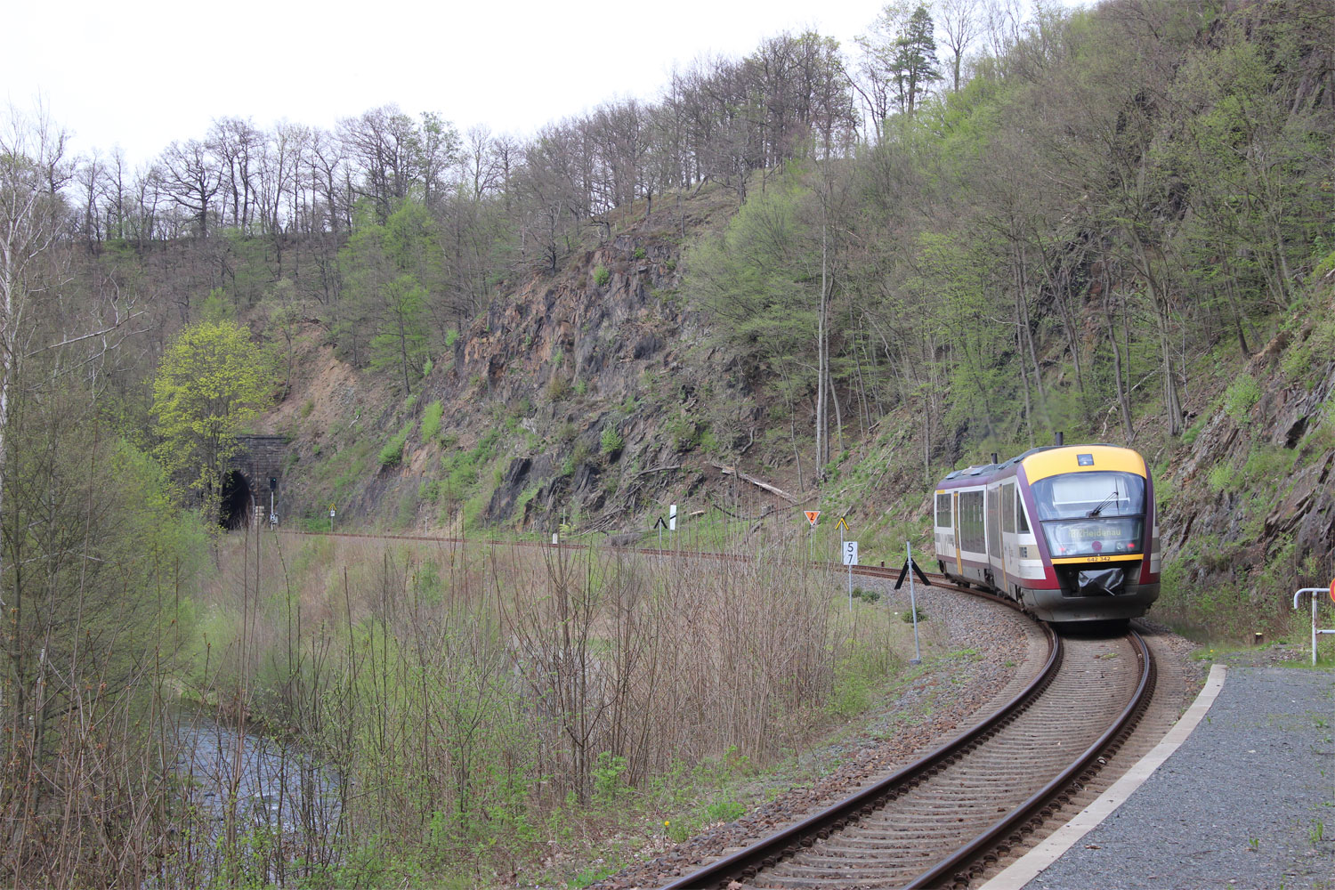 Im Hintergrund das Südportal des Köttewitzer Tunnels