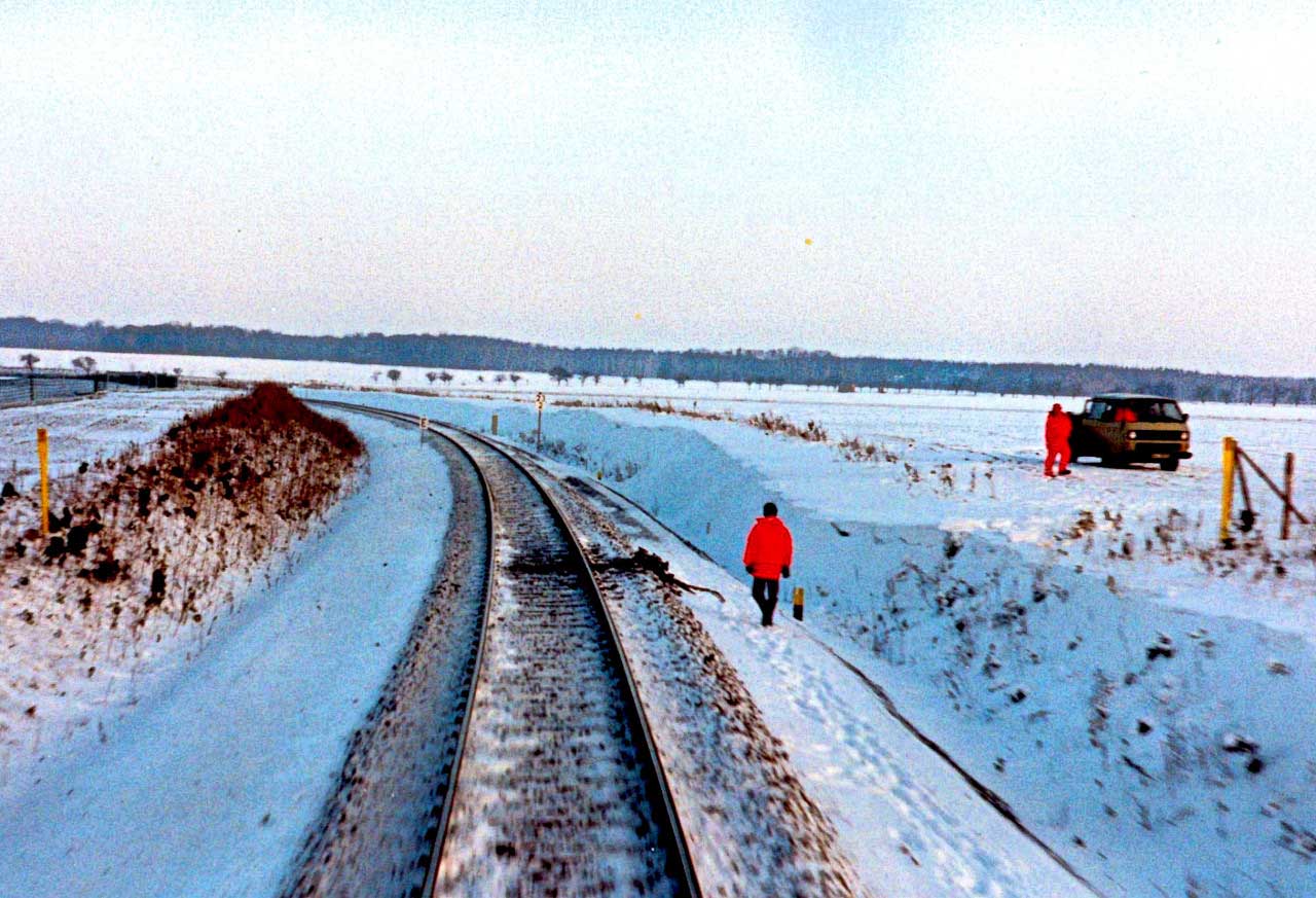 | km 0,0 der Strecke Heudeber-Danstedt 0,0 - Grenze Sowjetische Besatungszone/Englische Besatzungszone (Streckenunterbrechung) - Mattierzoll Süd 20,8 | ||
