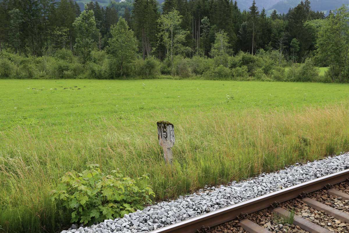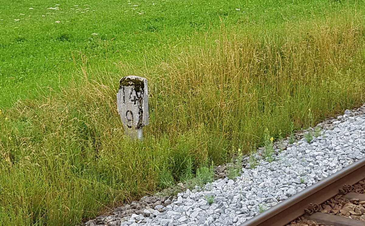 km 9,5 (Stein und Tafel) und km 9,7 (Stein) zwischen Sonthofen und Altstädten (Allgäu) - Blick Richtung Immenstadt