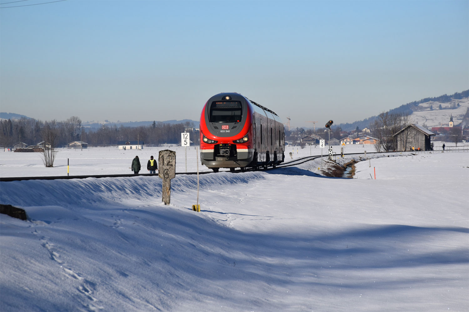 km 2,1 zwischen Immenstadt und Blaichach (Allgäu) - 633 551 und 633 xxx als RE 3691