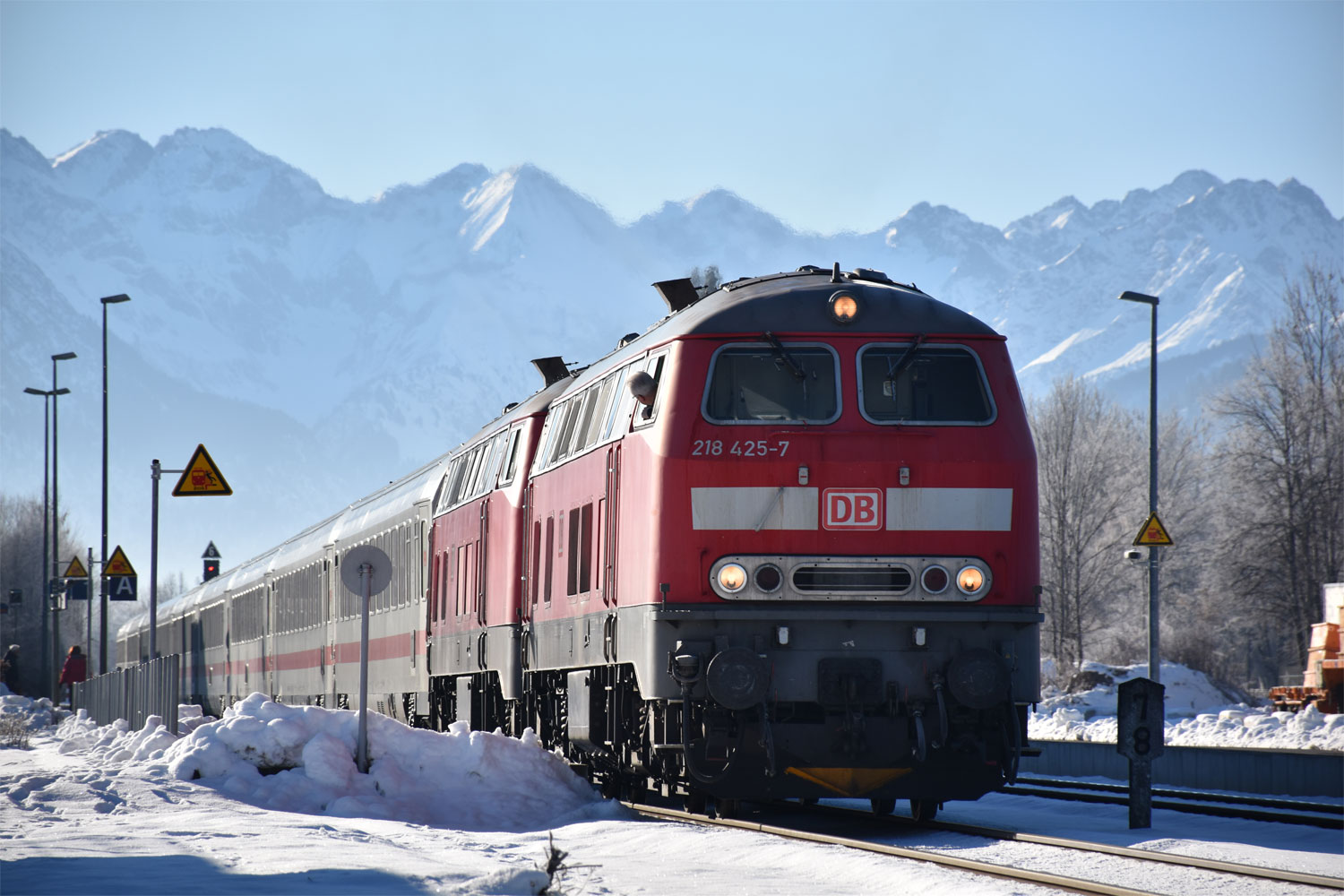 218 415 mit dem IC 2084 Nebelhorn [Oberstdorf - Augsburg (Wechsel auf E-Lok) - Hamburg-Altona]