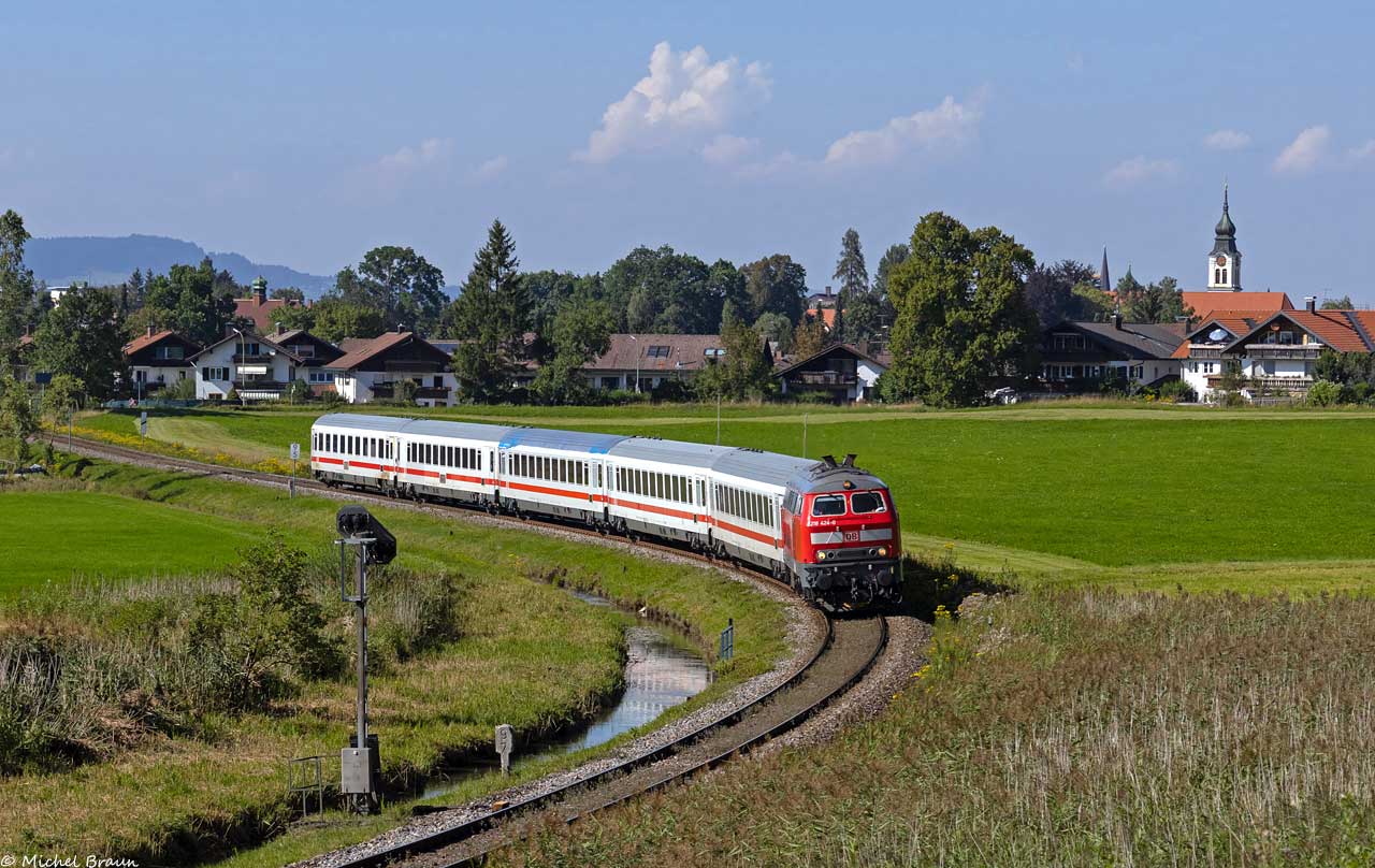 km 3,8 zwischen Immenstadt und Blaichach (Allgäu) - 218 326 mit IC 2084 (Oberstdorf - Augsburg)
