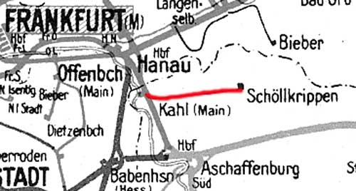 Kahl (Main) Privatbahn 0,0 km 27,41 der Strecke Frankfurt (Main) Süd 0,0 - Frankfurt (Main) Ost 2,38 - Hanau Hbf 19,95 - Aschaffenburg Hbf 43,17