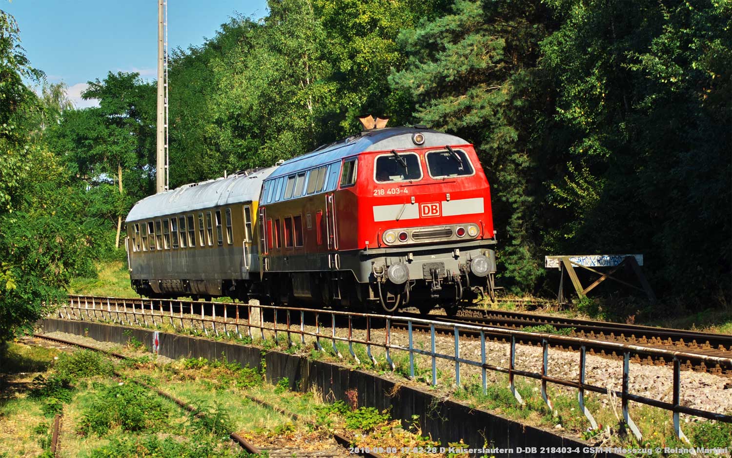 km 1,2 bei Kaiserslautern - 218 403 mit GSM-R-Messzug