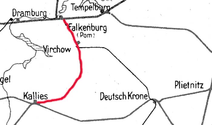 km 0,0 der Strecke Falkenburg (Pom) 0,0 - Bad