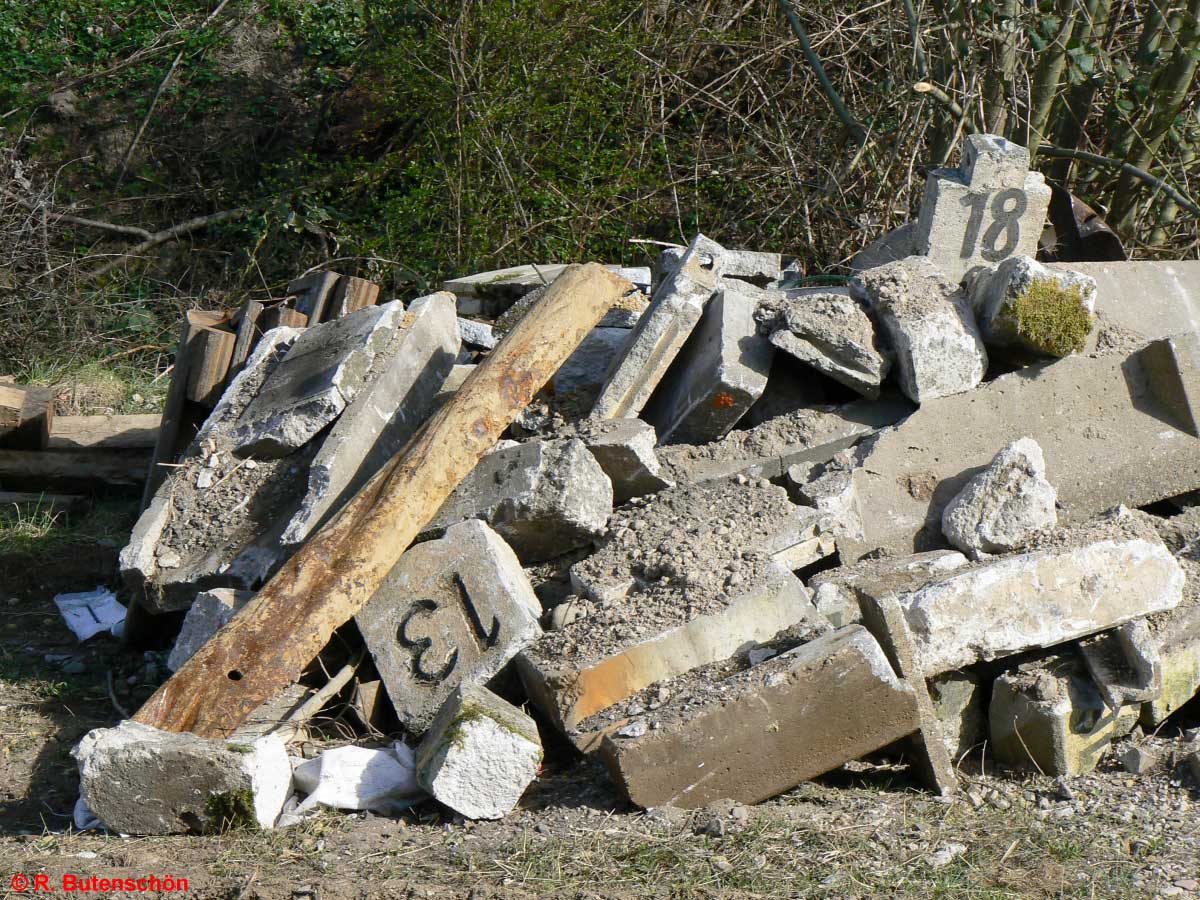 Streckensanierung - ausgediente Hektometersteine bei Felde-Brandsbek