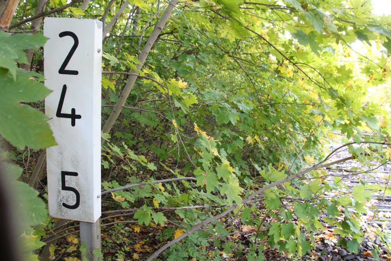 km 131,18 der Strecke (Berlin Stettiner Bf -0,28) - Eberswalde 45,24 (Abzw. von Strecke 2) - Wriezen 75,57 - Frankfurt (Oder) 131,18 | ||
