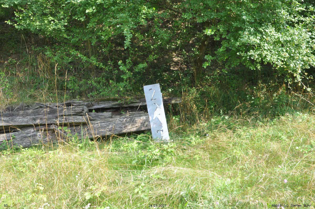 ► | km 20,60 der abzweigenden Strecke (Küstrin-Kietz 0,0) - Abzw Wüste Kunersdorf 20,60 - Booßen 24,39 - Frankfurt (Oder) Rbf 27,78 mit weiterlaufender Kilometrierung (Strecke mit gemeinsamen Nullpunkt Küstrin-Kietz 0,0) | |