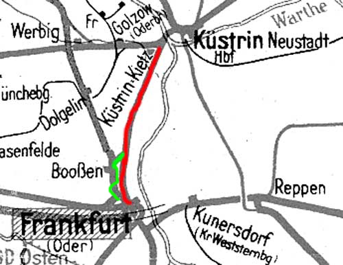 (Küstrin-Kietz 0,0) - Abzw Wüste Kunersdorf 20,60 - Booßen 24,39 - Frankfurt (Oder) Rbf 27,78 (1938)