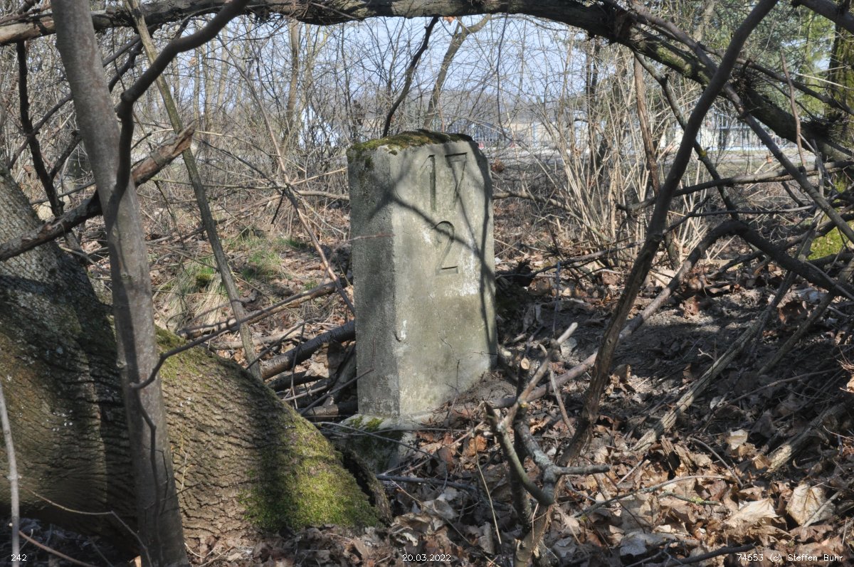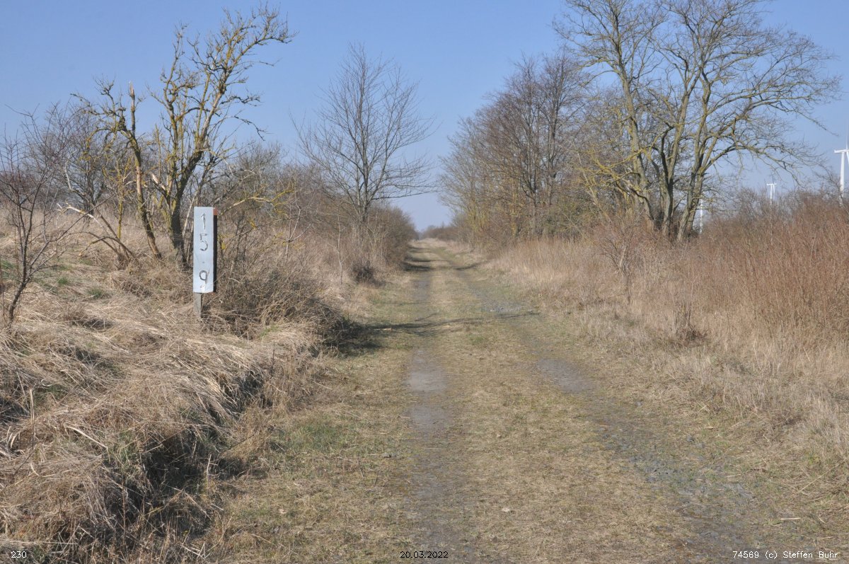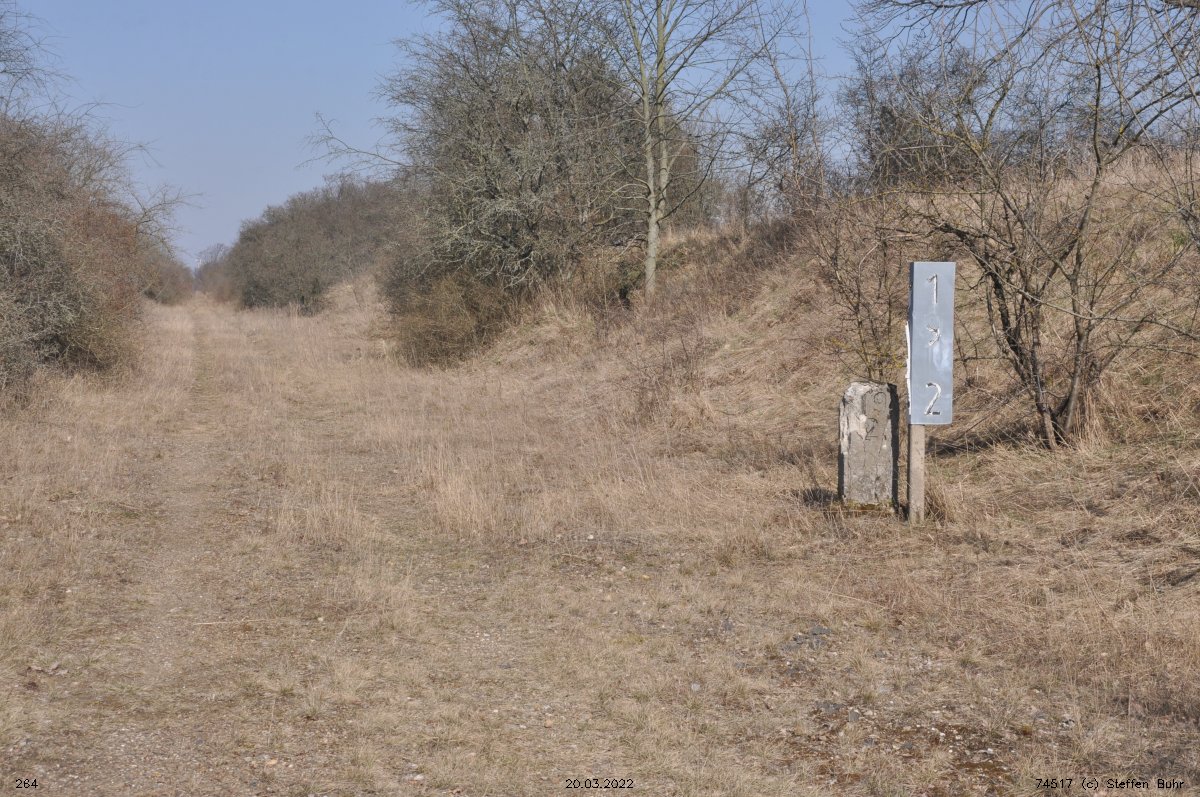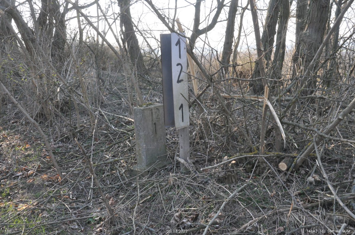 ► | km 22,10 der abzweigenden Strecke (Cüstrin 0,0) - Abzw Stw Wü 22,10 - Booßen 25,89 - Frankfurt (Oder) Vbf 29,28 mit weiterlaufender Kilometrierung (Strecke mit gemeinsamen Nullpunkt Cüstrin 0,0) | |