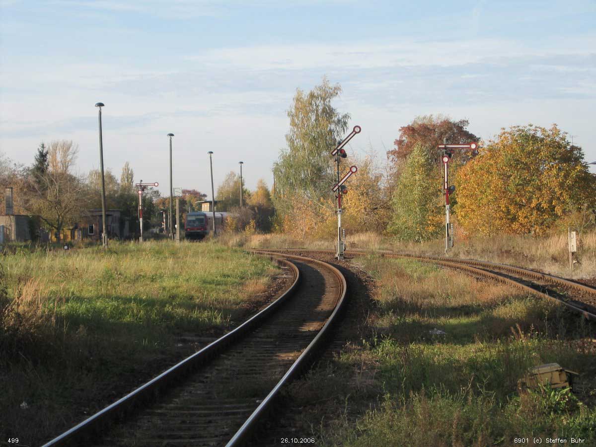 Rechts die Kurve nach Berlin, im Hintergrund das Stellwerk Kst
