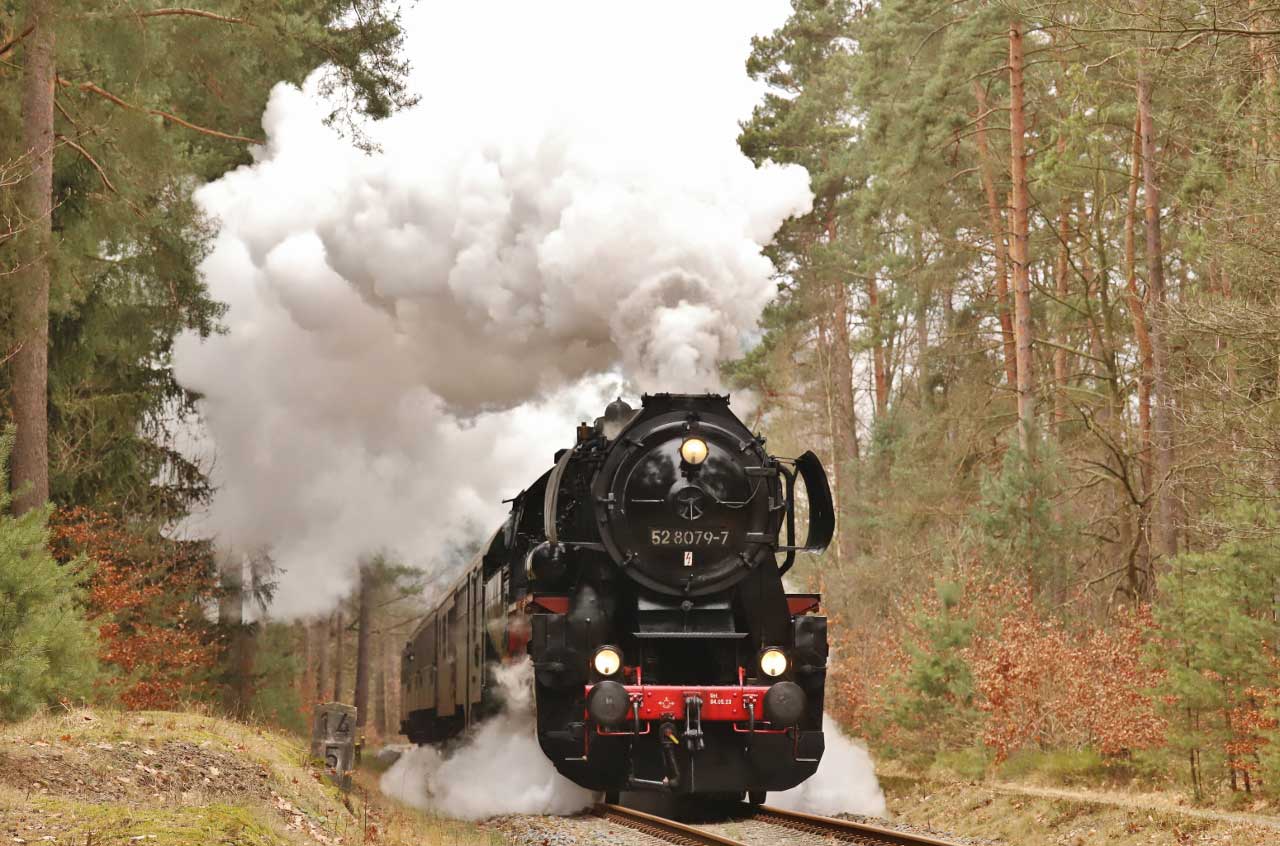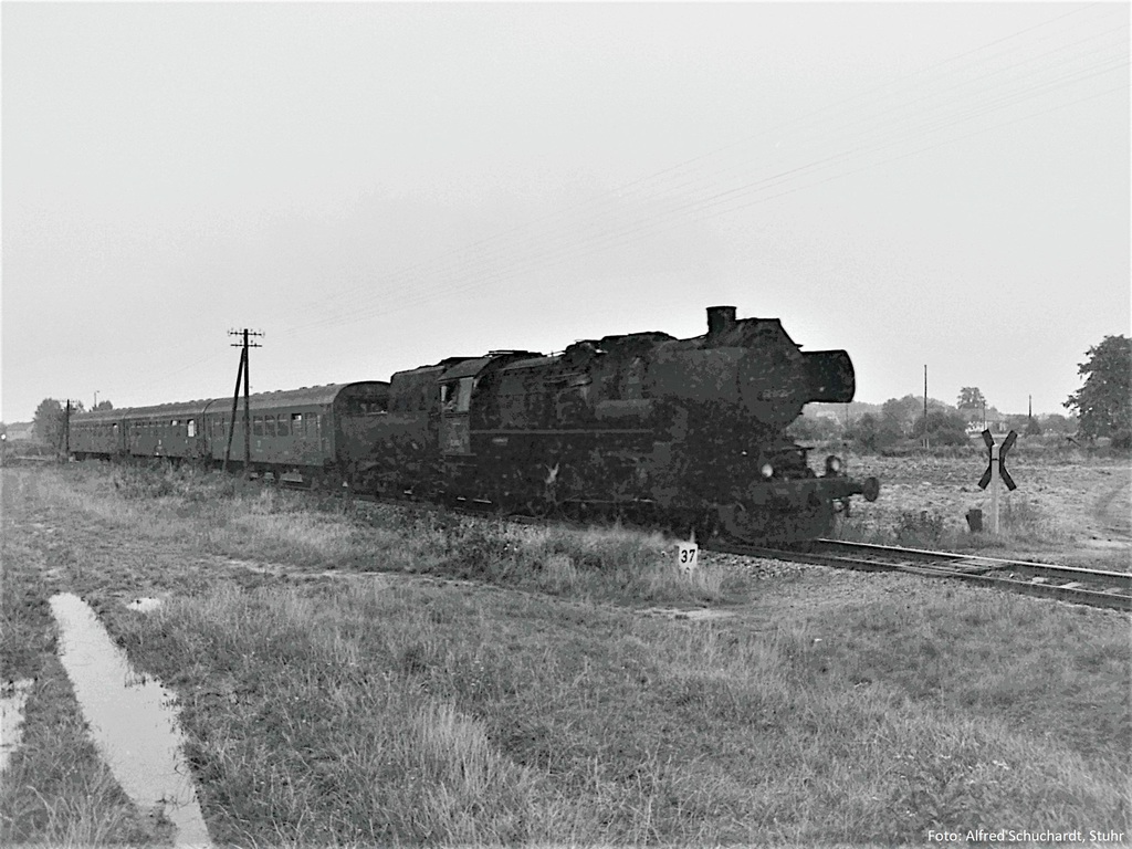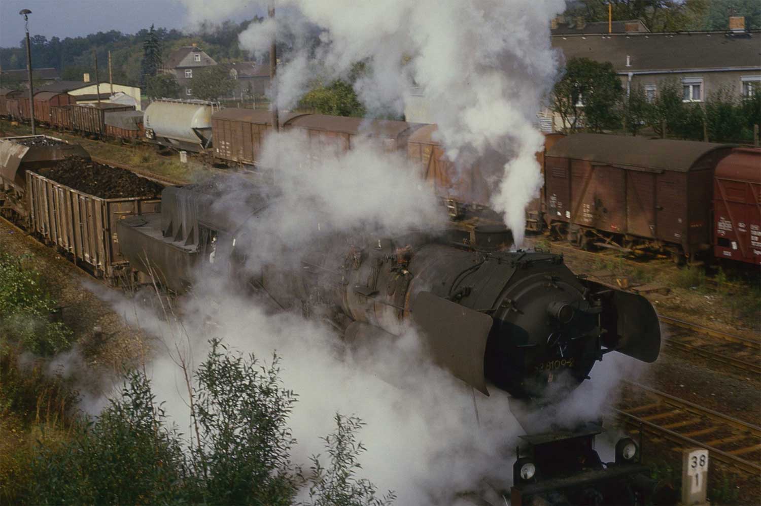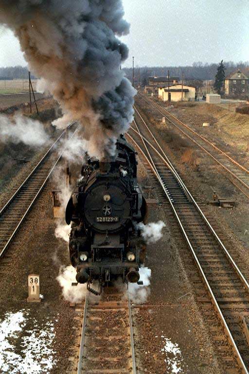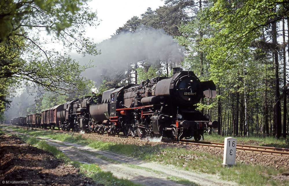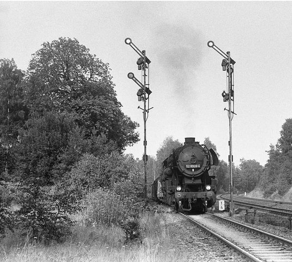 Zwei Loks der Baureihe 52 mit einem Nahgüterzug