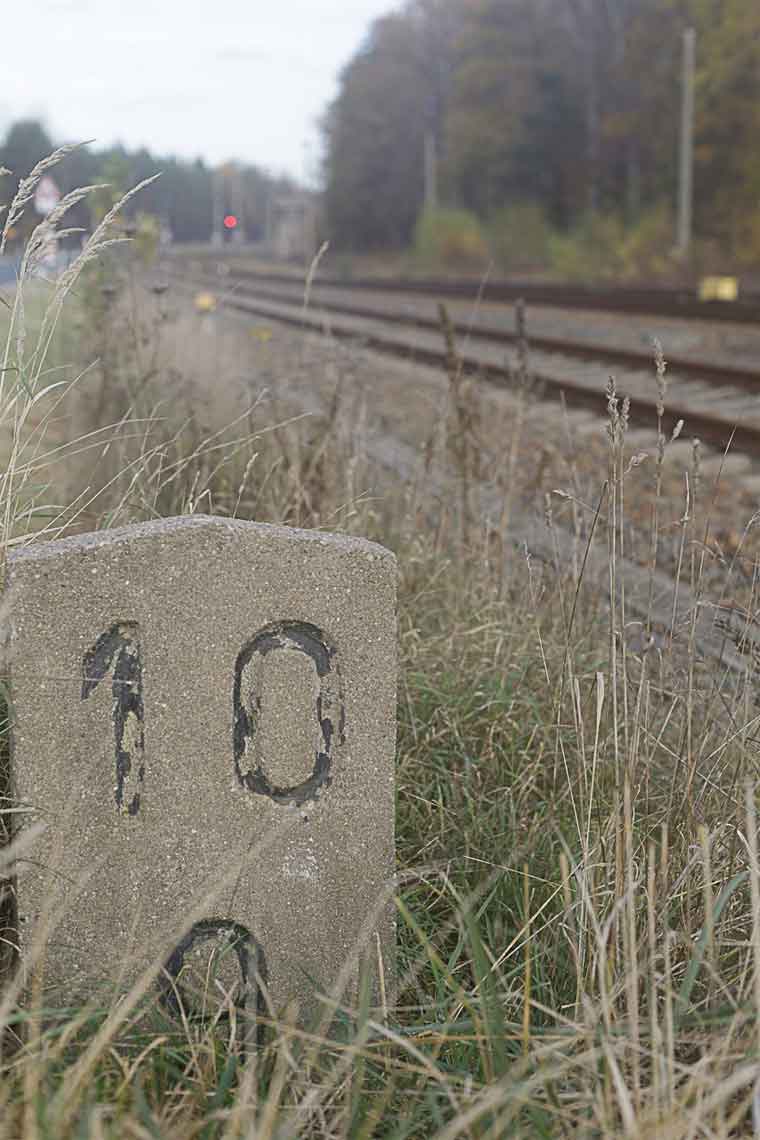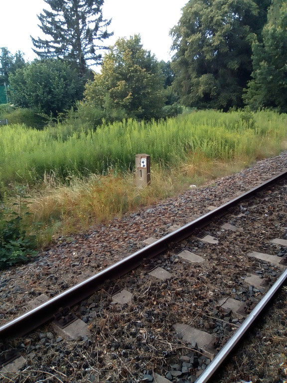 km 16,3 zwischen Ottendorf-Okrilla Nord und Laußnitz - man beachte den kreativ gestalteten Stein