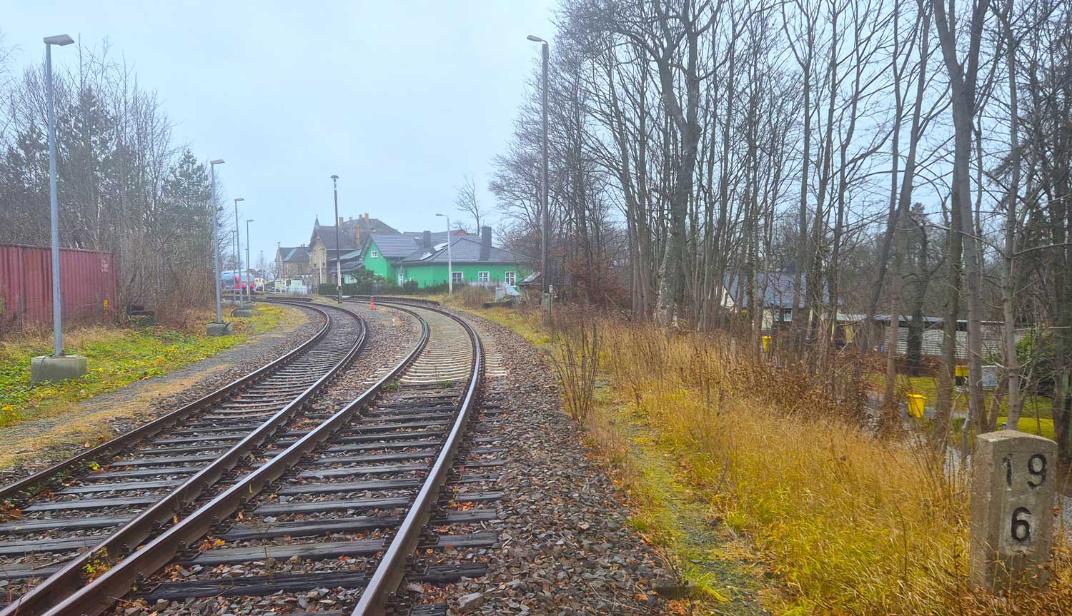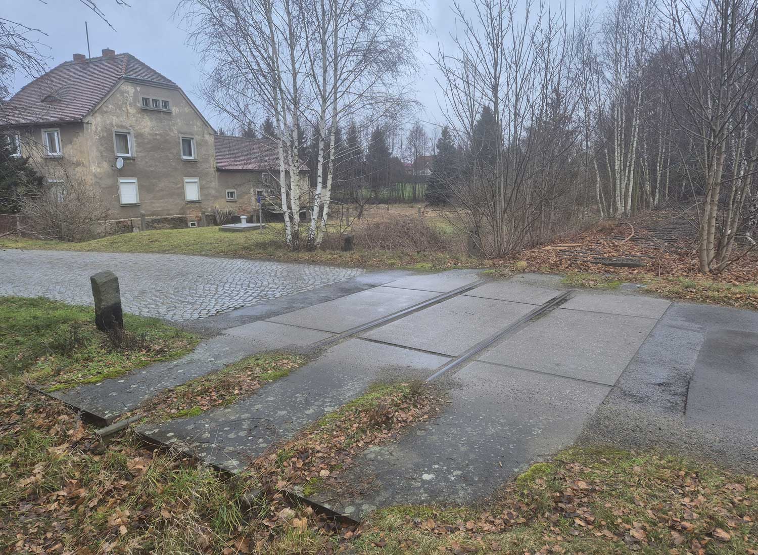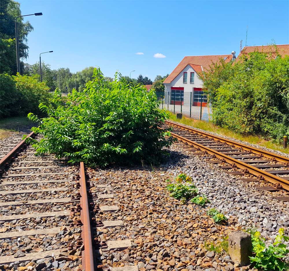 links das Anschlussgleis zur Lausitzer Grauwacke.