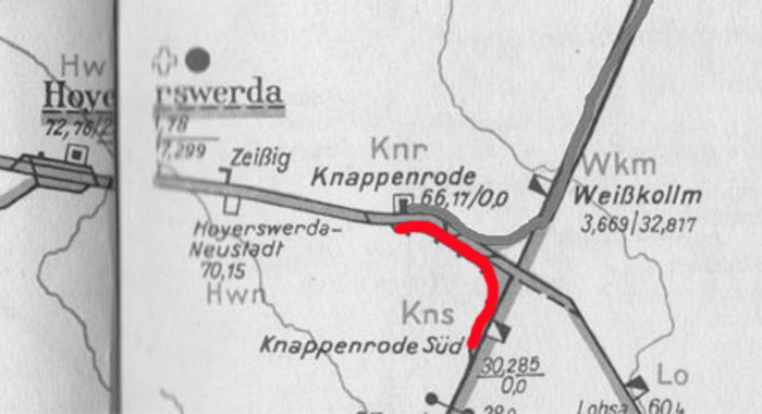 Strecke Knappenrode 0,0 - Weißkolm 3,67 - Abzw. Spreewitz Süd