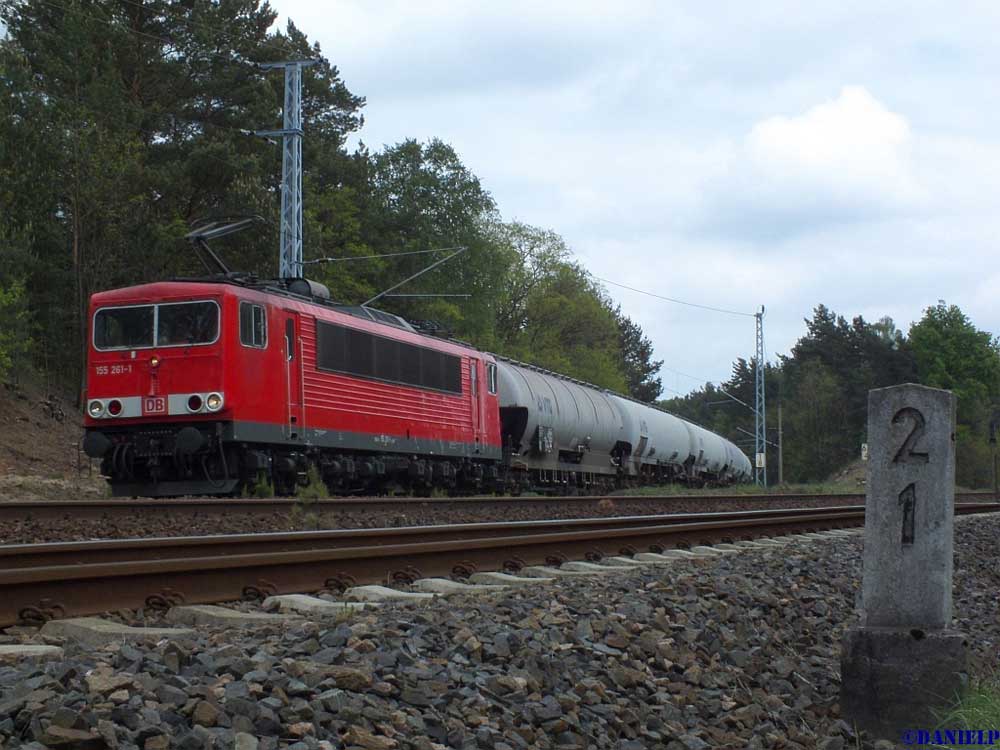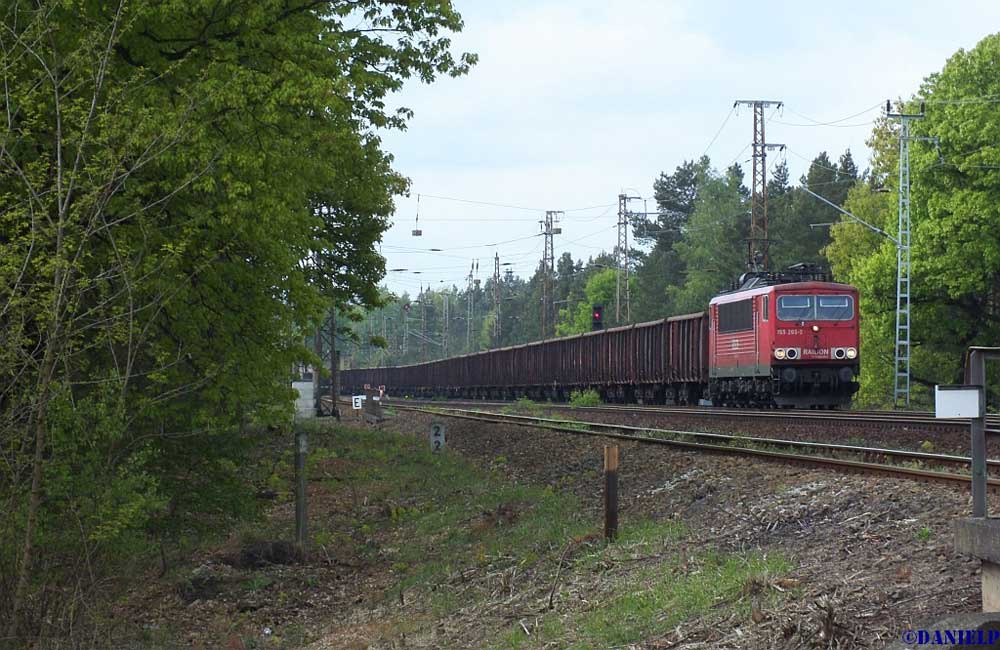 155 265 mit einem Eas-Zug von Knappenrode nach Spreewitz auf der Strecke