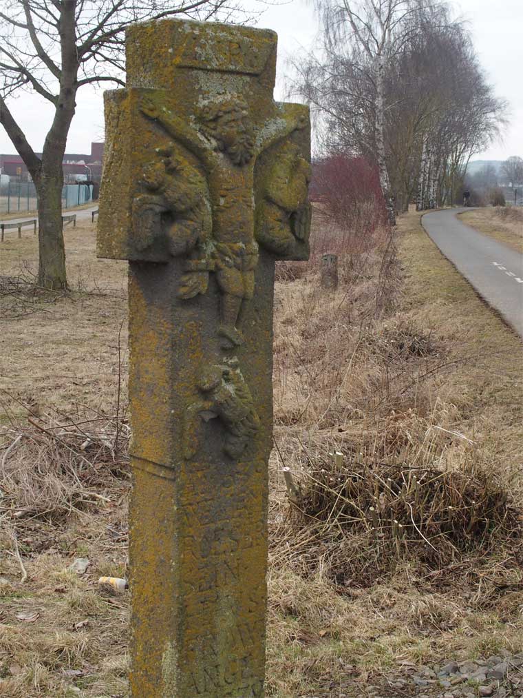 Im Vordergrund ein eifeltypisches Basaltkreuz