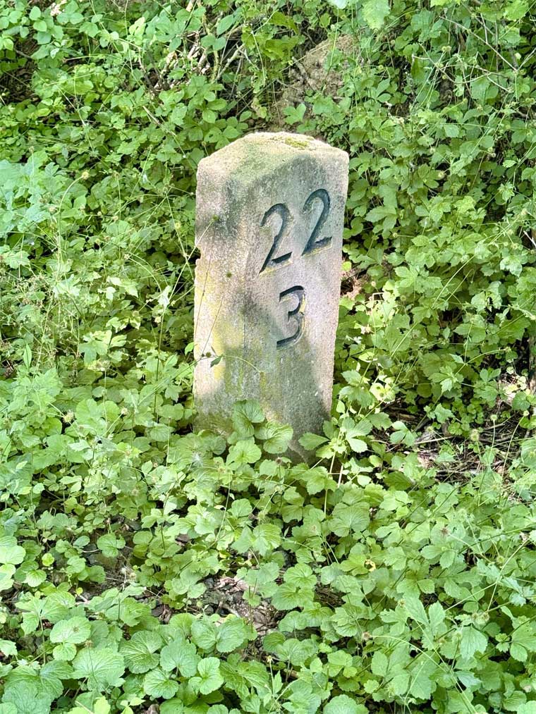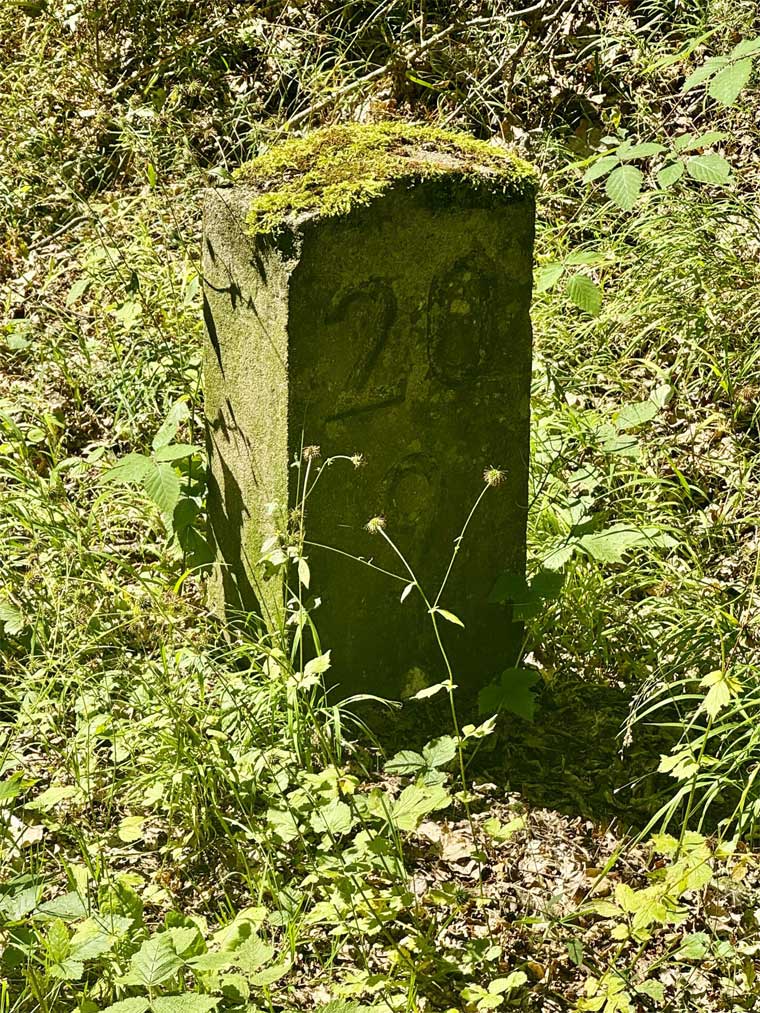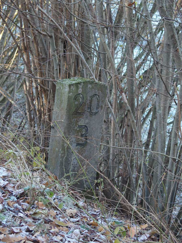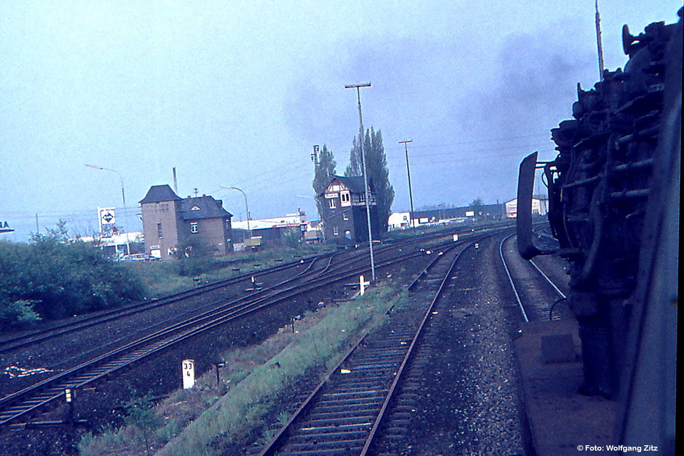 Links hinter dem Zugschluss ist km 31,7 zu erkennen